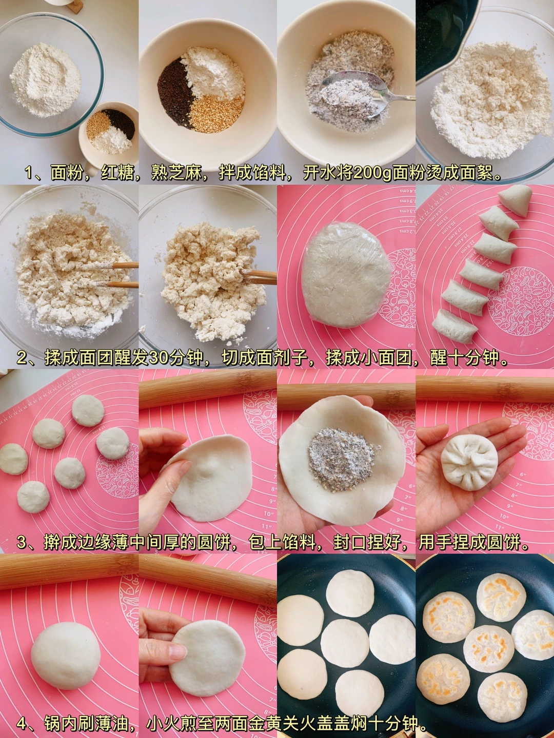 今日分享:红糖芝麻小糖饼,有手就会,简单易做,考虑到现在是控糖时期,糖量较少[偷笑R][偷笑R],喜欢糖多的可多加一些红糖。
