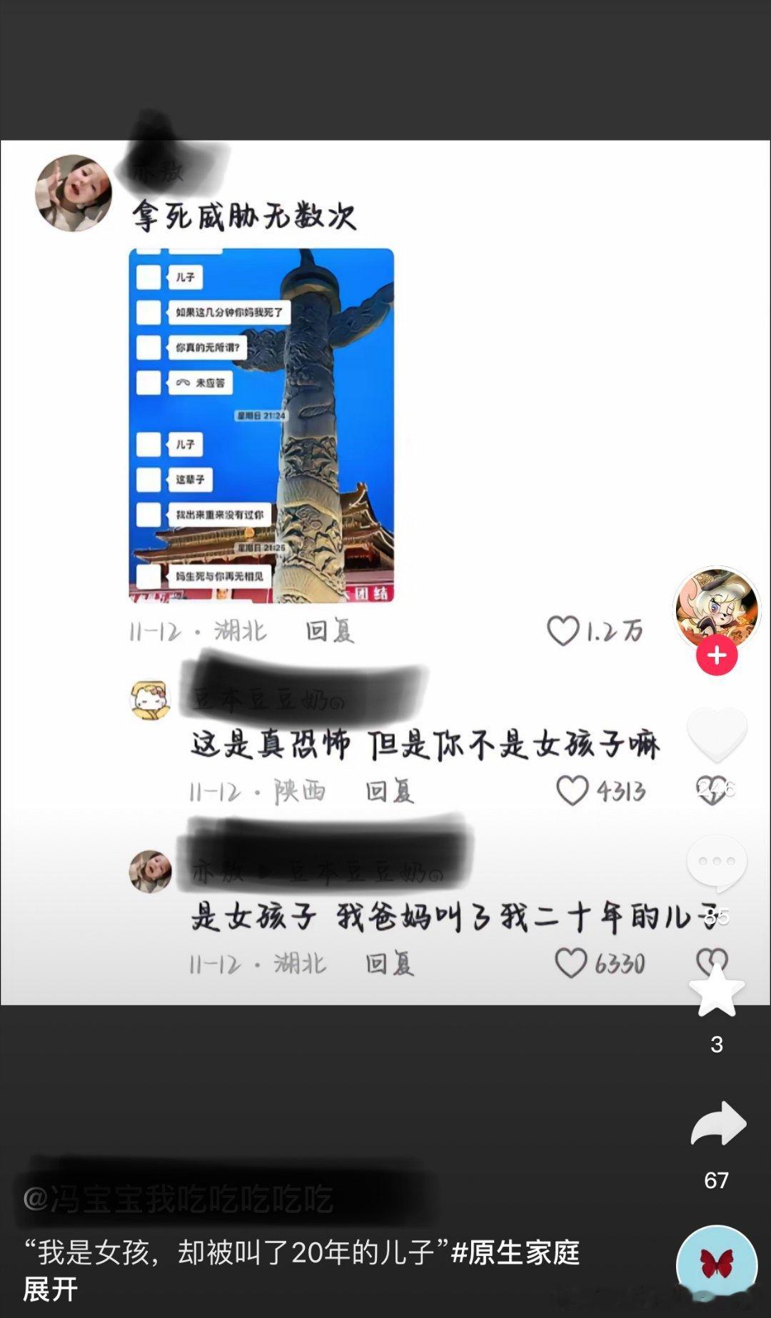 明眼人都能看出是重男轻女,结果plq“某些东北人”别太好笑,说“我们大东北也把女儿喊儿子呀”,湖北啥时候也有把女儿喊儿子的爱称了