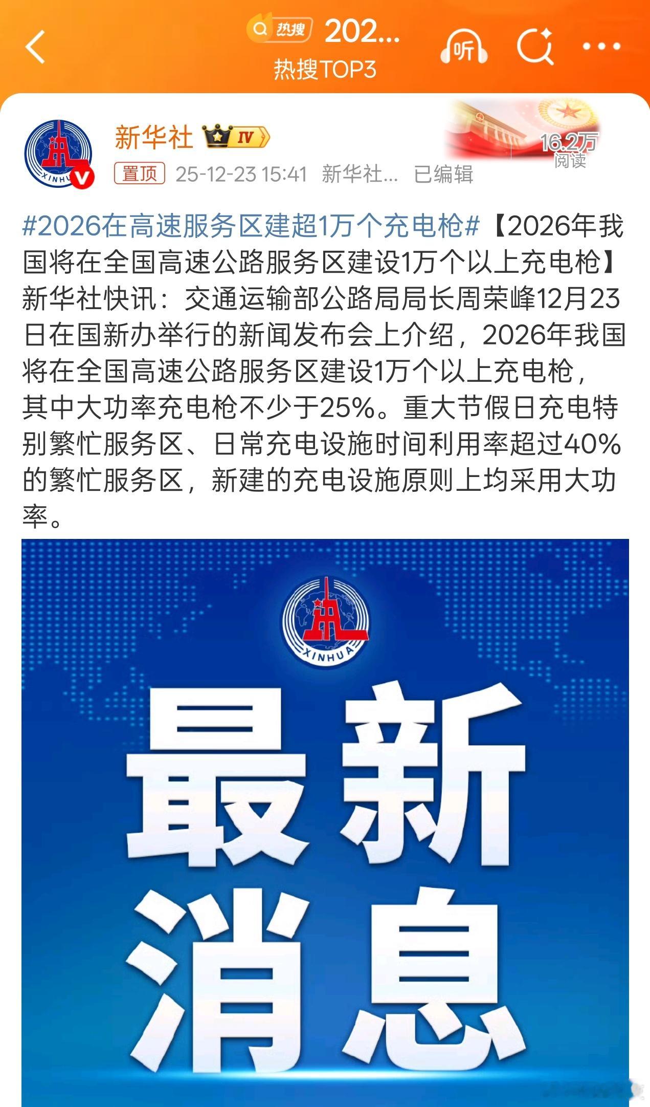 支持,利好新能源汽车的快速发展,充电枪快速布局就是最好的配套2026在高速服务区建超1万个充电枪