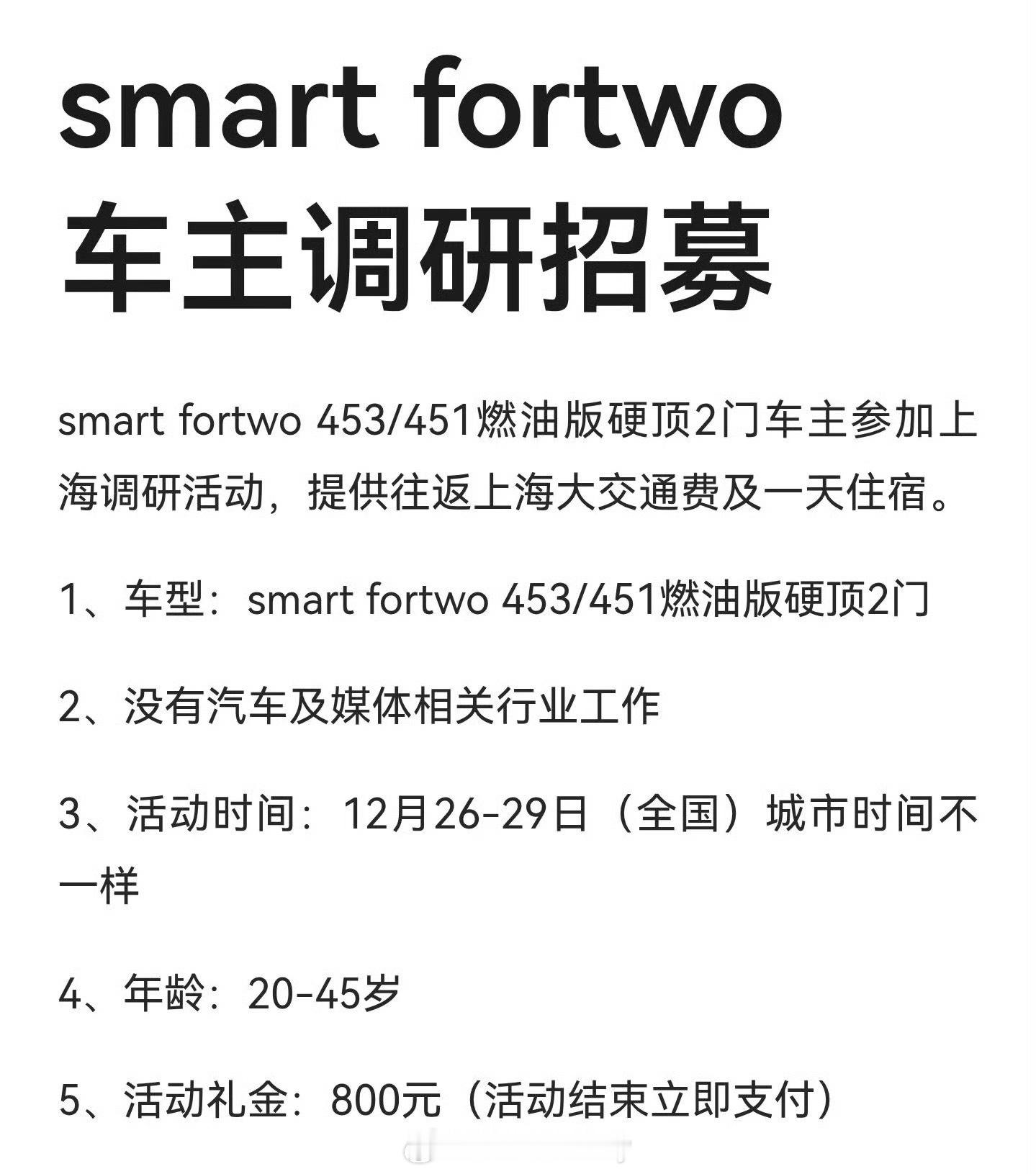 smart双门说是明年要来没有那么快但感觉节奏挺快已经开始潜在用户调研有点快!smart新能源大牛说