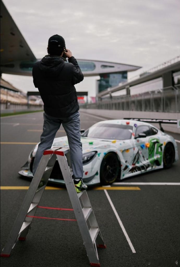王一博上赛测试新车王一博怼着新赛车狂拍 之前王一博开的是奥迪R8这次换成AMG GT了大v聊车
