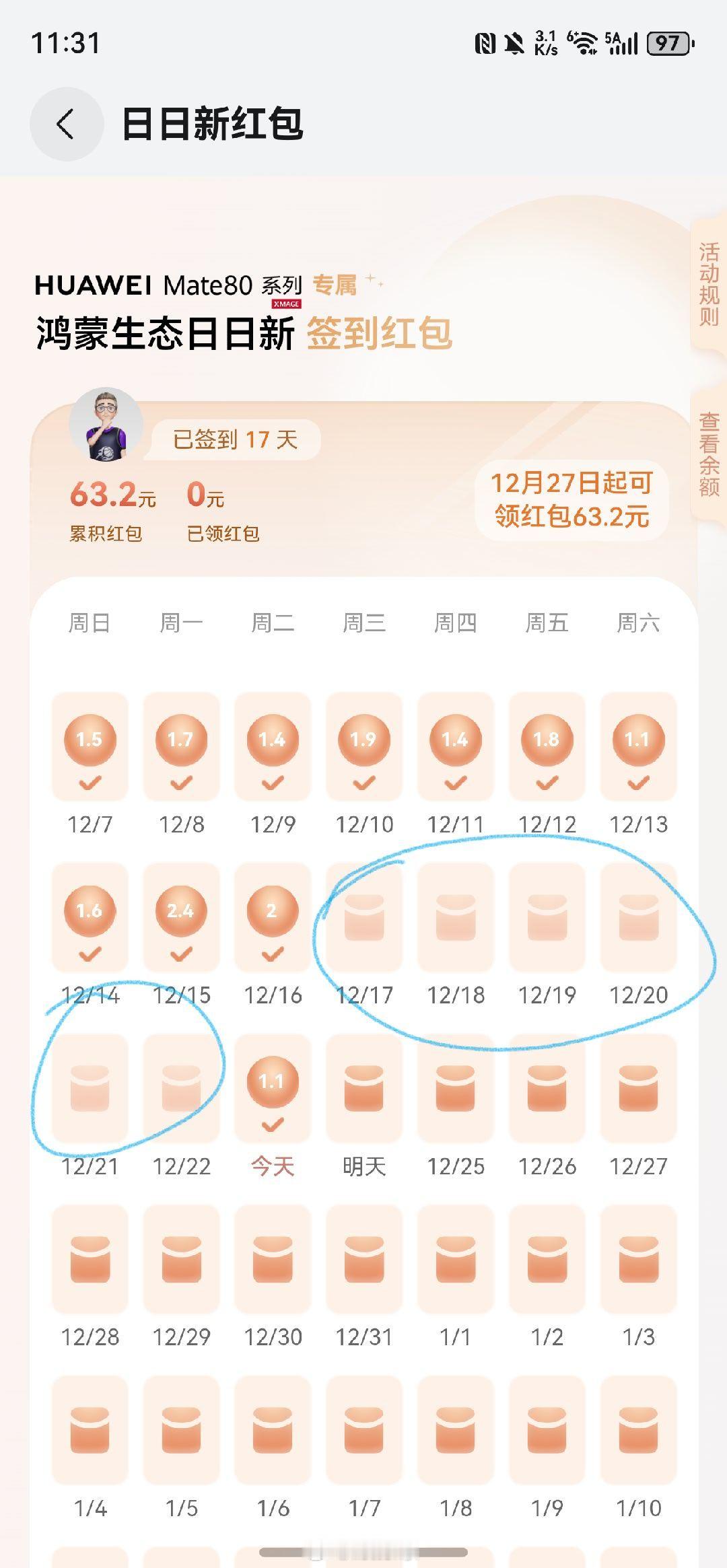 这几天出差红包日日新红包漏了领,感觉亏了好多钱