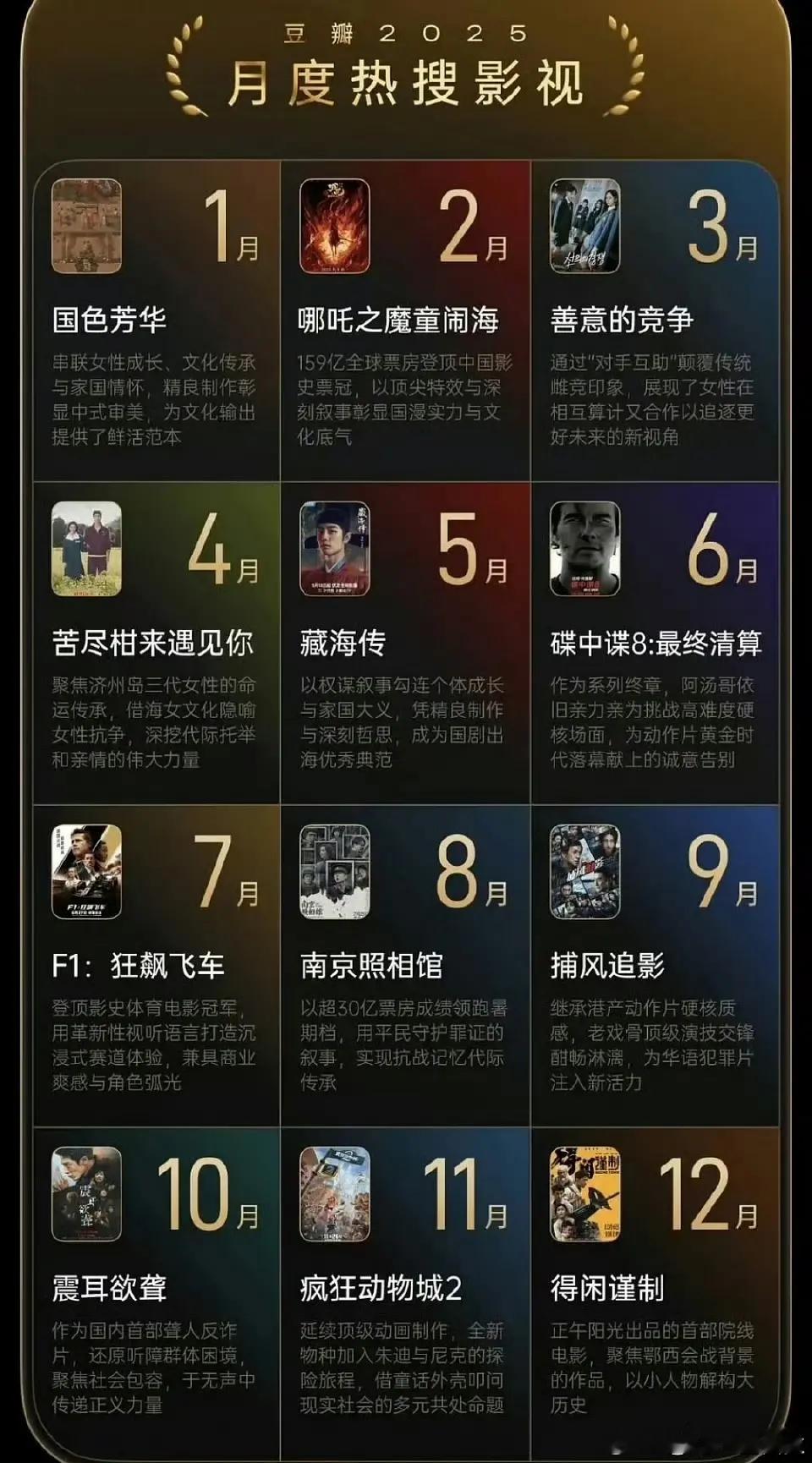豆瓣2025年度榜单🏆评分最高华语剧集、最受关注演员、年度热议角色,国色芳华、