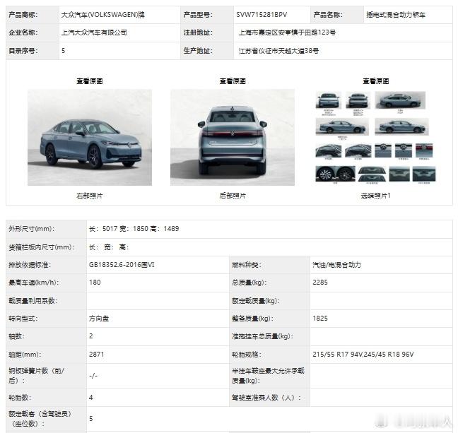 这两天工信部新上了上汽大众帕萨特ePro申报信息,就是帕萨特的插混车型,现款的叫430PHEV,用的还是那个老的1.4T机头,新款的同步了EVO2的1.5T机头,然后电池从原来的13度增加到22度了,官方说CLTC纯电续航超过150km,综合续航1300km+,看数据是能叫板国产新势力了,但是这个EVO2发动机肯定是比它们强,主要是外观也更新了,这一代本身就挺像新能源的,放插混上也毫不违和,而且这个名字上汽大众把他们新一代的产品都统一成Pro了,现在把插混并进来算完善了,这个ePro好不好听先放一边,起码比原来那个430PHEV强多了