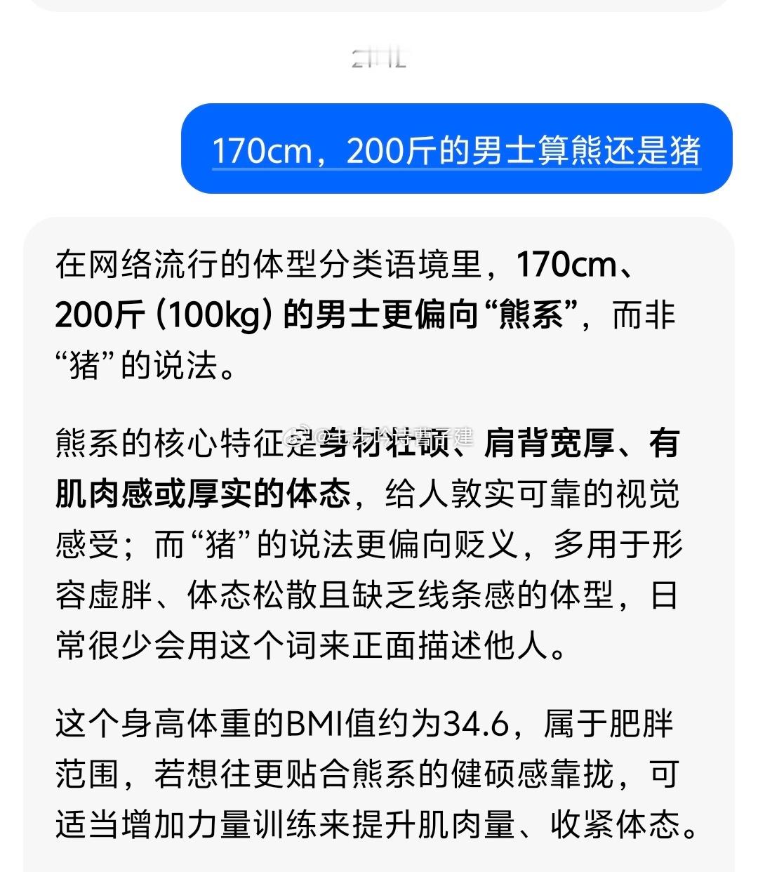 在写搞基文,问我170cm身高,200多斤算啥熊还是猪?我去问了豆包