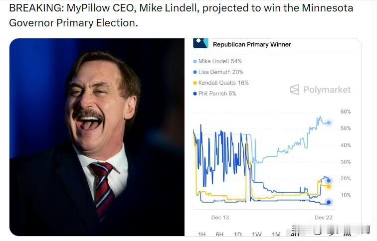 枕头哥迈克·林德尔预计将在明尼苏达州州长初选中获胜。