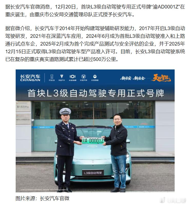 长安深蓝和北汽极狐的首批高速 L3 车辆上牌了号段都是 _A·_0001Z,但无任何特殊设计或标识其实我感觉 L3 的号牌如果做些特殊标识会更好大家怎么看新能源绿牌的设计?感觉普遍都是差评