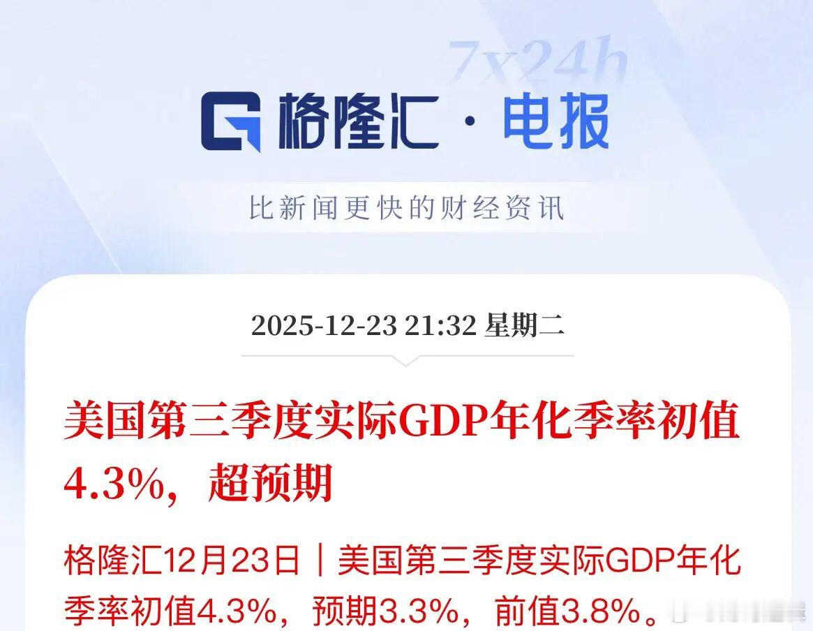 强劲的有点过分了,美国第三季度GDP初值4.3%,远超市场预期3.3%,虽然初值,但这水分就有点明显了美国第三季度GDP出乎意料之外的强劲,远超市场预期3.3%,超1%,有多夸张,就不在不知道到时候终值要修到多少了,至少这数据做的不错,强劲的GDP数据,强劲的消费数据,符合预期的PCE数据,美股期货都吓跳水了,三大指数期货全线跳水了,美元高兴直接拉升,白银大涨猛拉起来,已经突破70.5美元/盎司了。