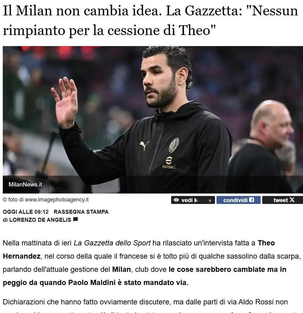AC米兰官方只说了四个字,但私下做了三件事。 官网上一句“不予置评”,让球迷心凉了半截。但转会记者罗马诺撕开了另一面:俱乐部同期已密会特奥经纪人,明确“希望长期合作”。冷对公众,热搞私下,这是高层玩转的平衡术。 《米兰体育报》追溯源头,特奥原话仅是“对未来持开放态度”。俱乐部选择冷处理,是怕干扰欧洲杯赛事。但专家点破:意甲老牌球队的通病,就是公关体系总慢球迷情绪半拍。 球迷要的从来不是保证,而是态度。要的是那句“你很重要”。现代足球,管理像精密机器,但球迷用心脏跳动。专业,是生存的算法;温度,才是传承的密码。