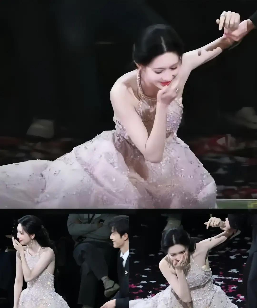 她摔了一跤,涨了80万粉。 你发现没?红毯上精心设计的造型无人问津,孟子义被