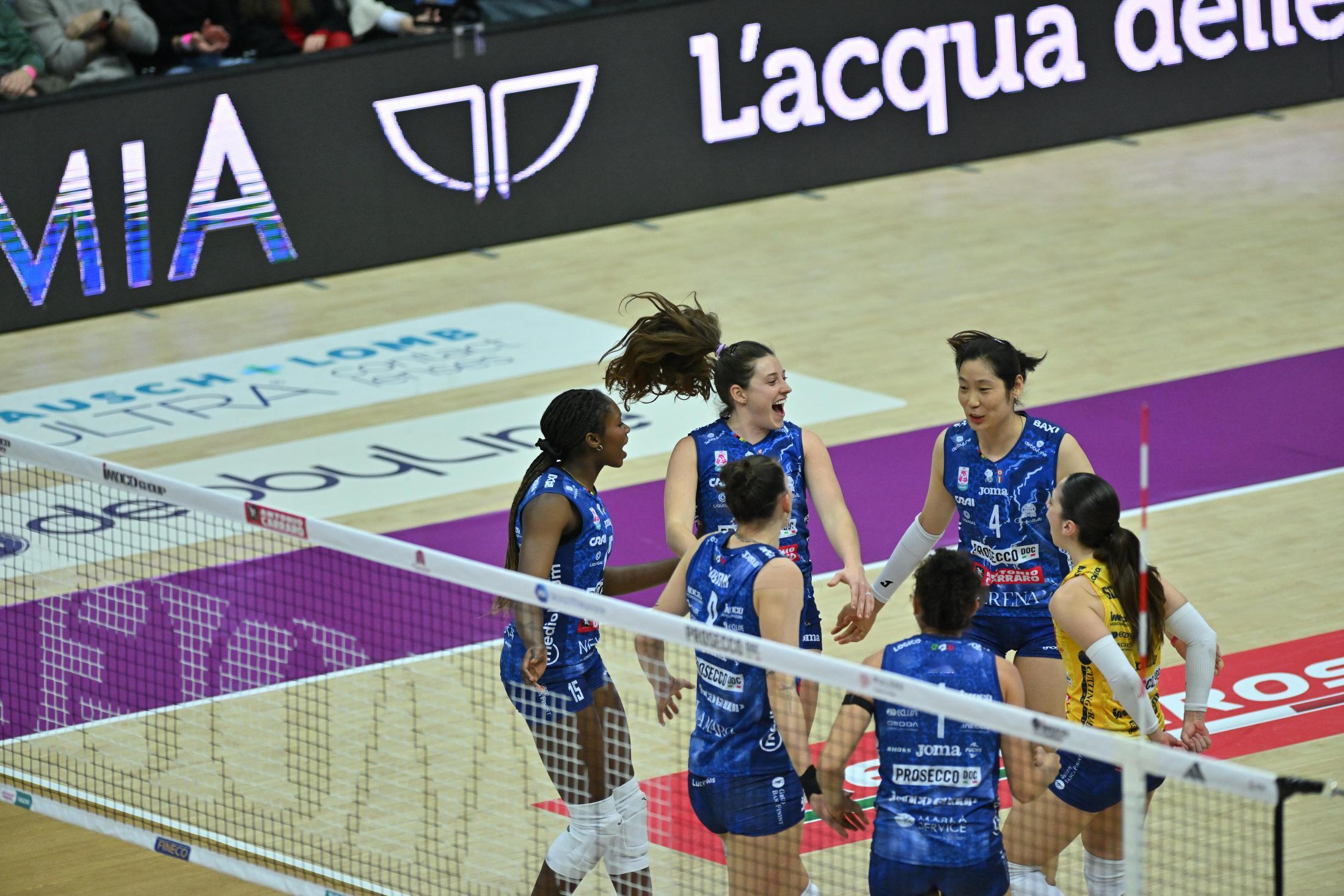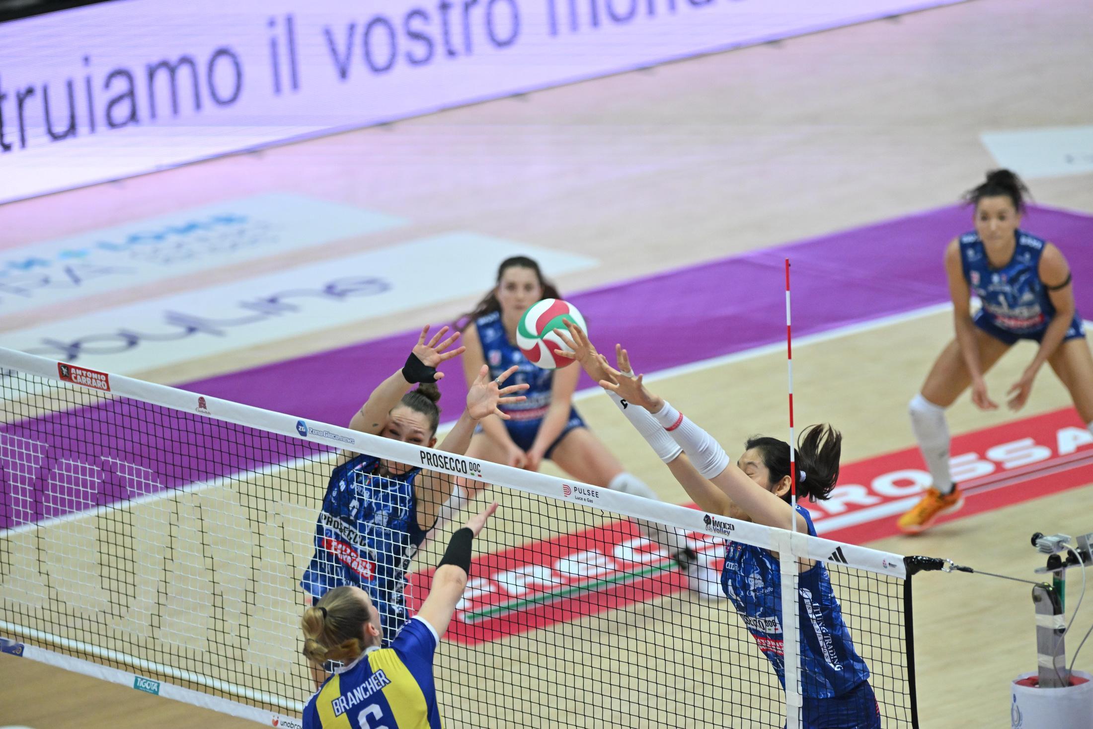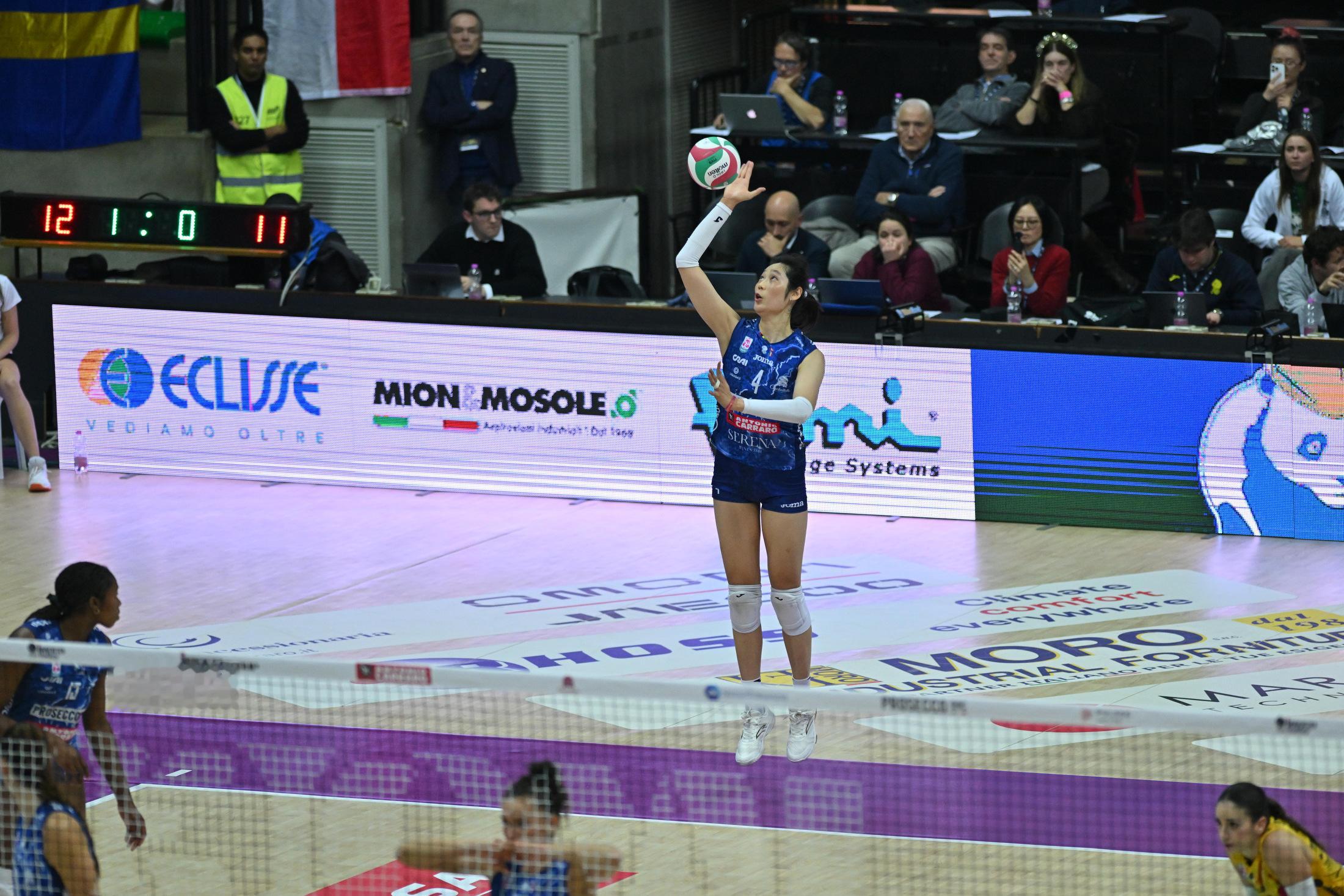 科内利亚诺3比0圣乔瓦尼,继续保持全胜!本场科内利亚诺轮换了沃洛什、哈克和德吉纳罗三名首发球员。两位中国球员首次在意甲交手,朱婷23扣11中(1失误)1拦,得到12分;庄宇珊27扣9中(3失误)1拦,得到10分。朱婷