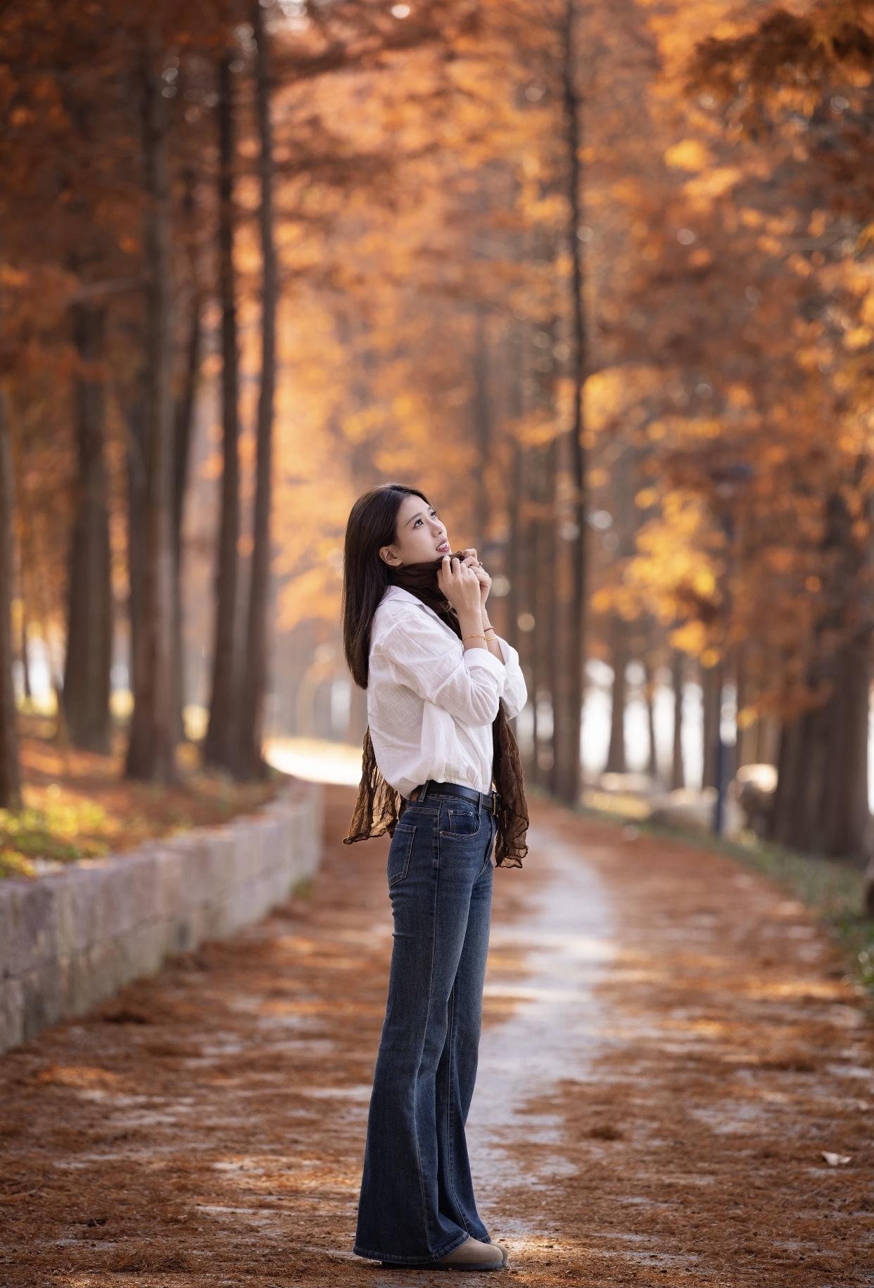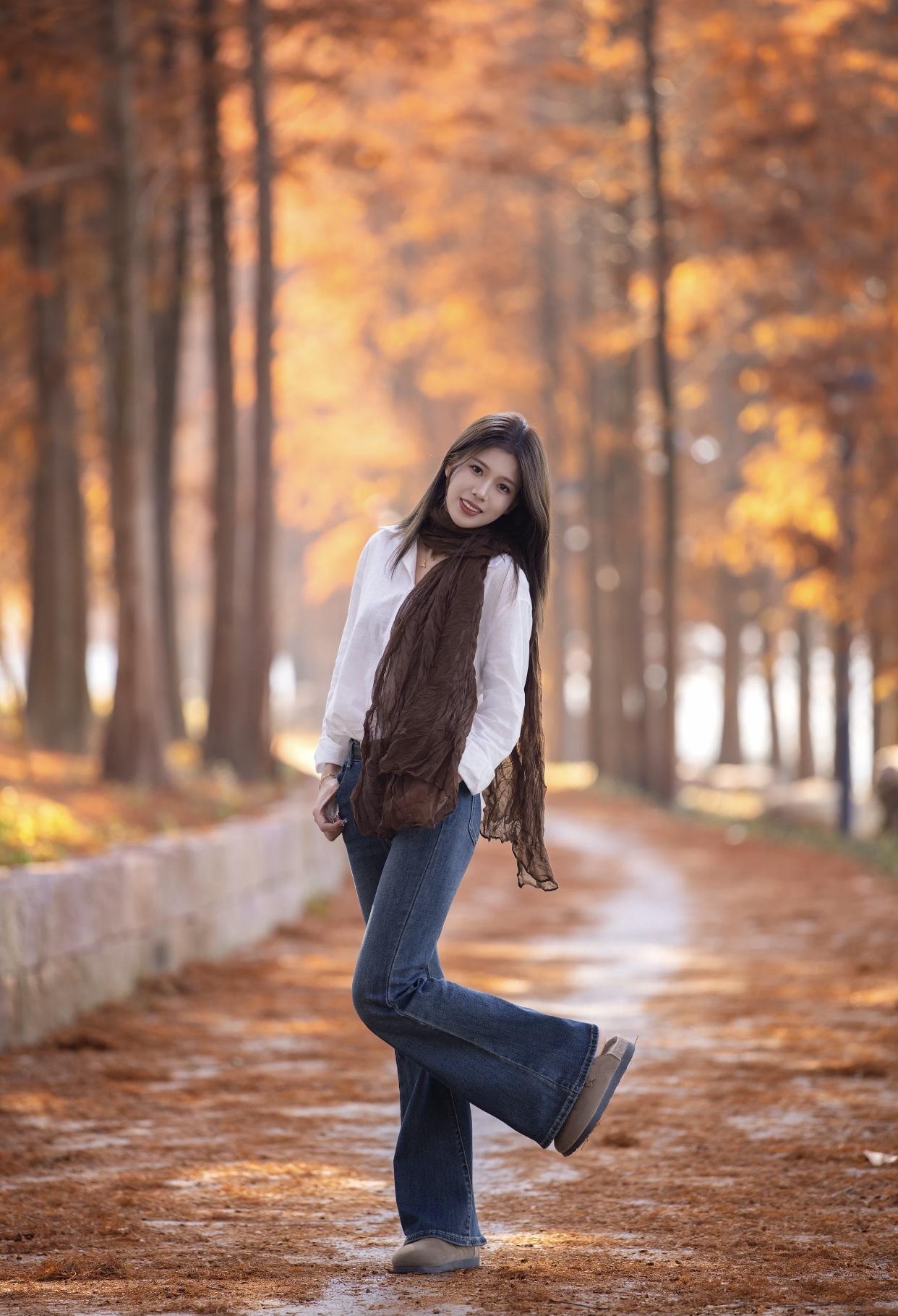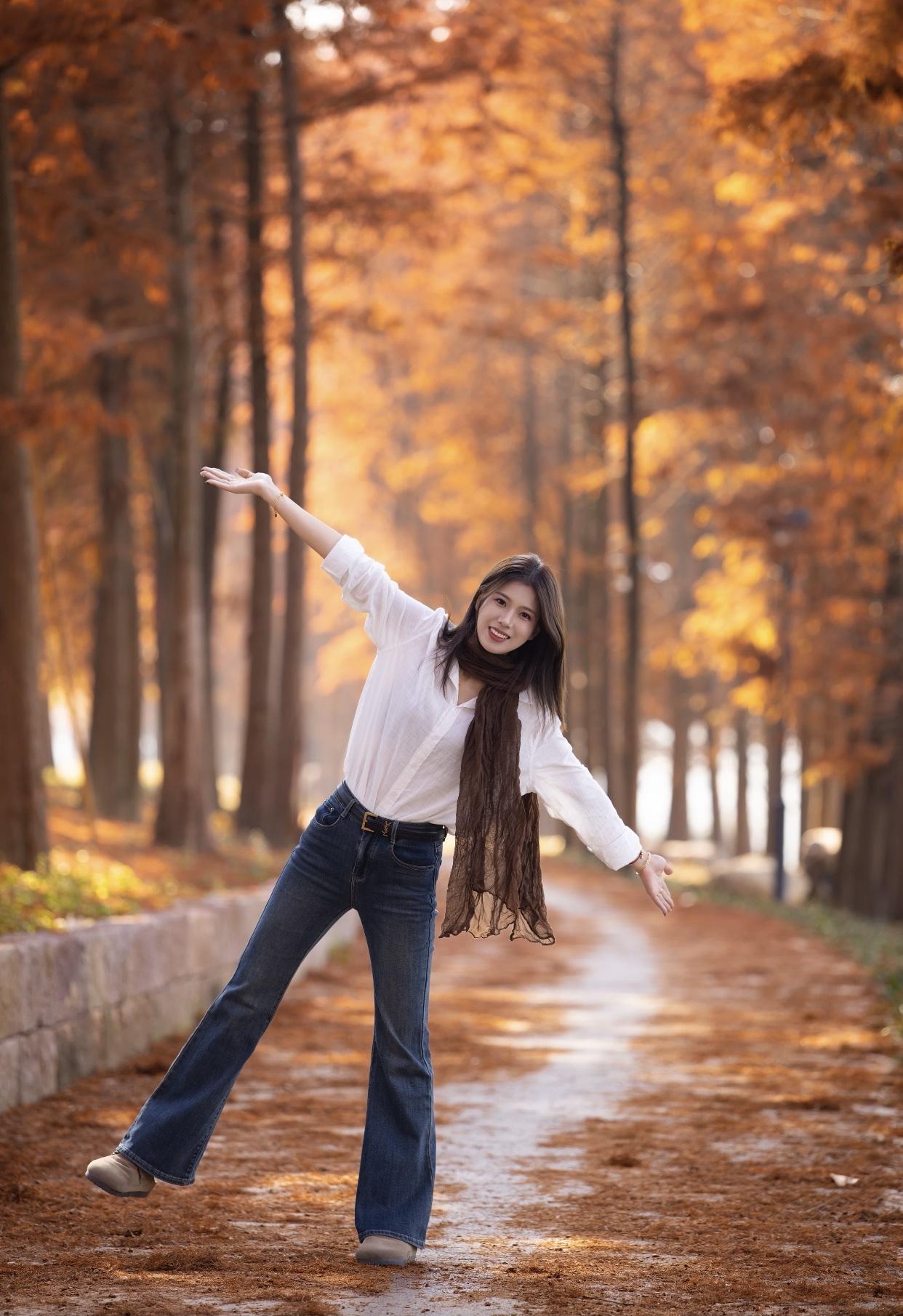来分享下你眼中的倾城美人吧!秋日漫步,落叶纷飞,时尚外套,优雅姿态。