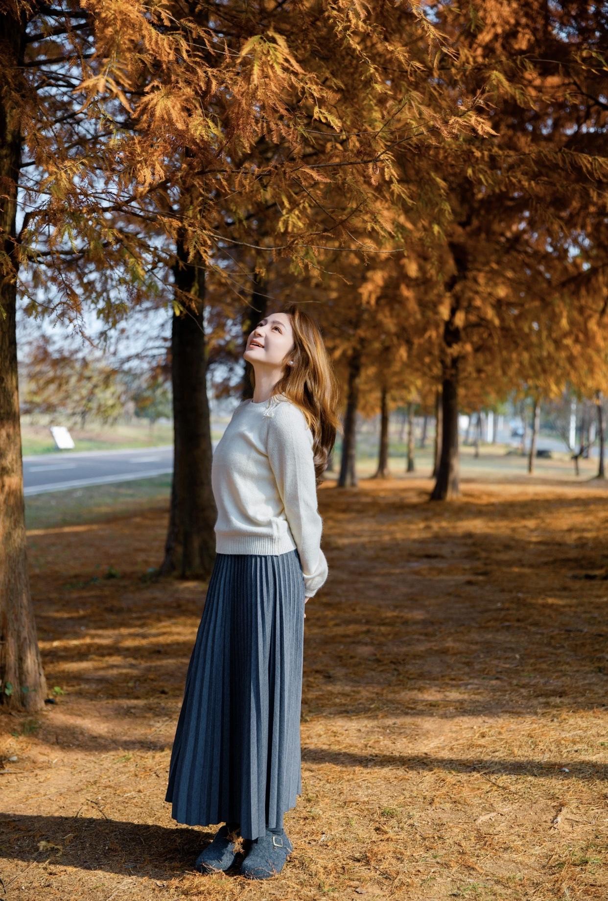 女人怎样穿搭,更有高级感秋风起,落叶舞,美人倚树笑。