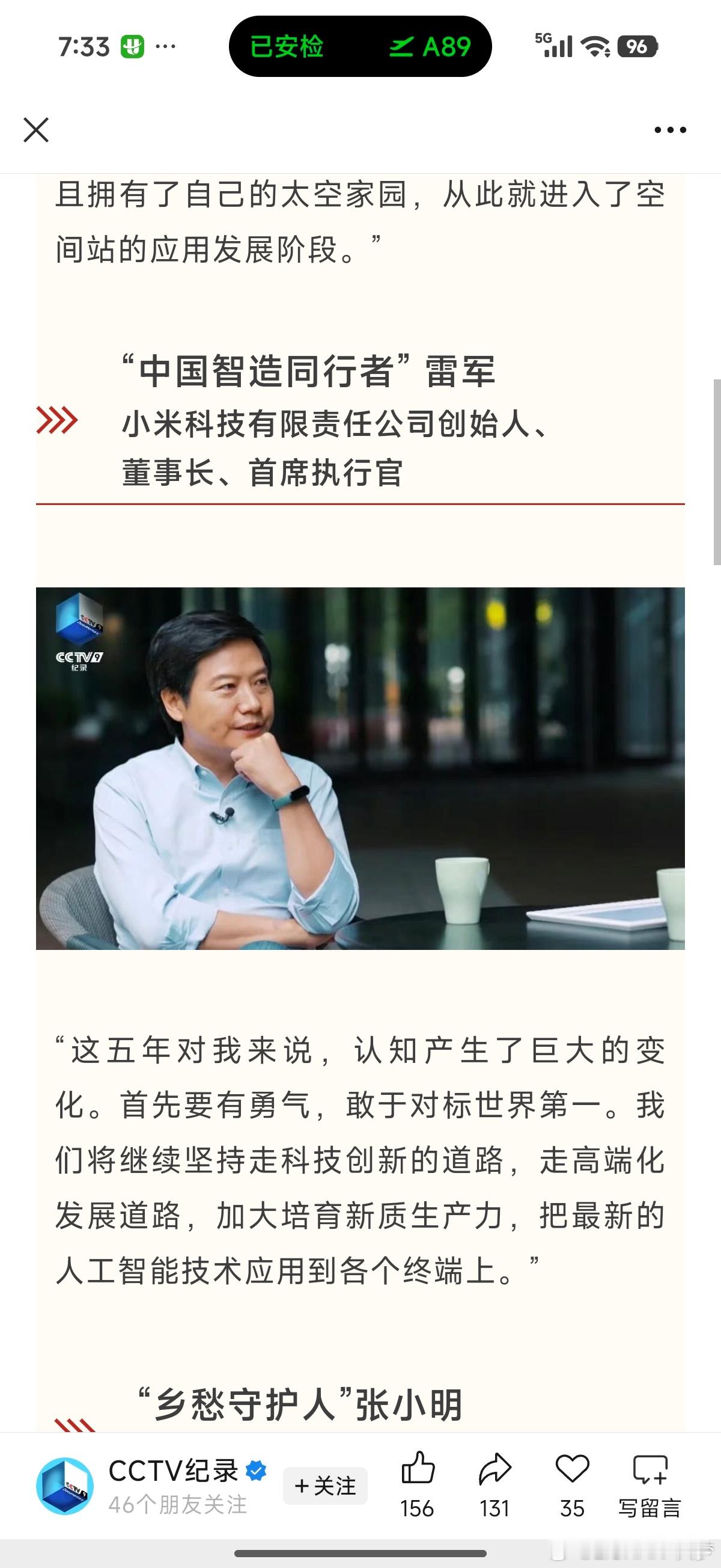 央视这个纪录片说是“十四五收官纪录片”应该没问题,然后这次有雷军。