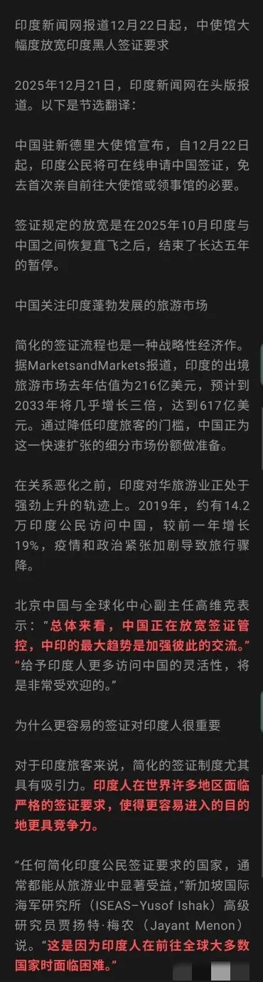 印度人来华签证放宽的热闹事儿!深圳地铁上老哥手抓咖喱饭的画面全网刷屏,这背后,正是中印签证政策松绑的大动作! 2025年3月起,中国驻印使馆火速核发5万份签证,取消预约、降费免生物识别,直飞航班也全面恢复。莫迪访华后,印度也同步松绑签证,简化技术人才电子签、上线投资签,这哪是巧合?2020年边境冲突后,印度电子制造业五年亏了150亿美元,中方放宽签证,正是给两国经济回血搭梯子,实打实的破冰信号! 放眼全球,移民潮已是大势,加拿大印度裔超500万,日本引5万印籍人才却引爆反移民游行。印度移民的家族式迁移、职场换血套路太猛,连加议员都直呼顶不住。咱这边也一样,印度赴华人数同比暴涨320%,华强北、张江到处都是印度面孔,这浪潮躲不开! 有人吐槽,说好的引高端人才,咋满街都是飞饼店?咱本有K签专招STEM精英,可旅游、商务签放宽后,难免混进普通从业者,地铁饮食、生活习惯差异也撞了咱的规矩。但咱不能因噎废食——日本缺制造业劳工,咱也面临老龄化,保洁、服务岗本就缺人,堵不如疏! 管理的门道,全在刚柔并济!北京社区办跨文化交流,上海企业做外籍培训,深圳地铁禁饮食一视同仁,景区设警示防陋习;新出的K签更精准,5年多次往返、单次停留180天,门槛卡着STEM学士以上,既揽高端人才,又防无序涌入,这就是中国方案!