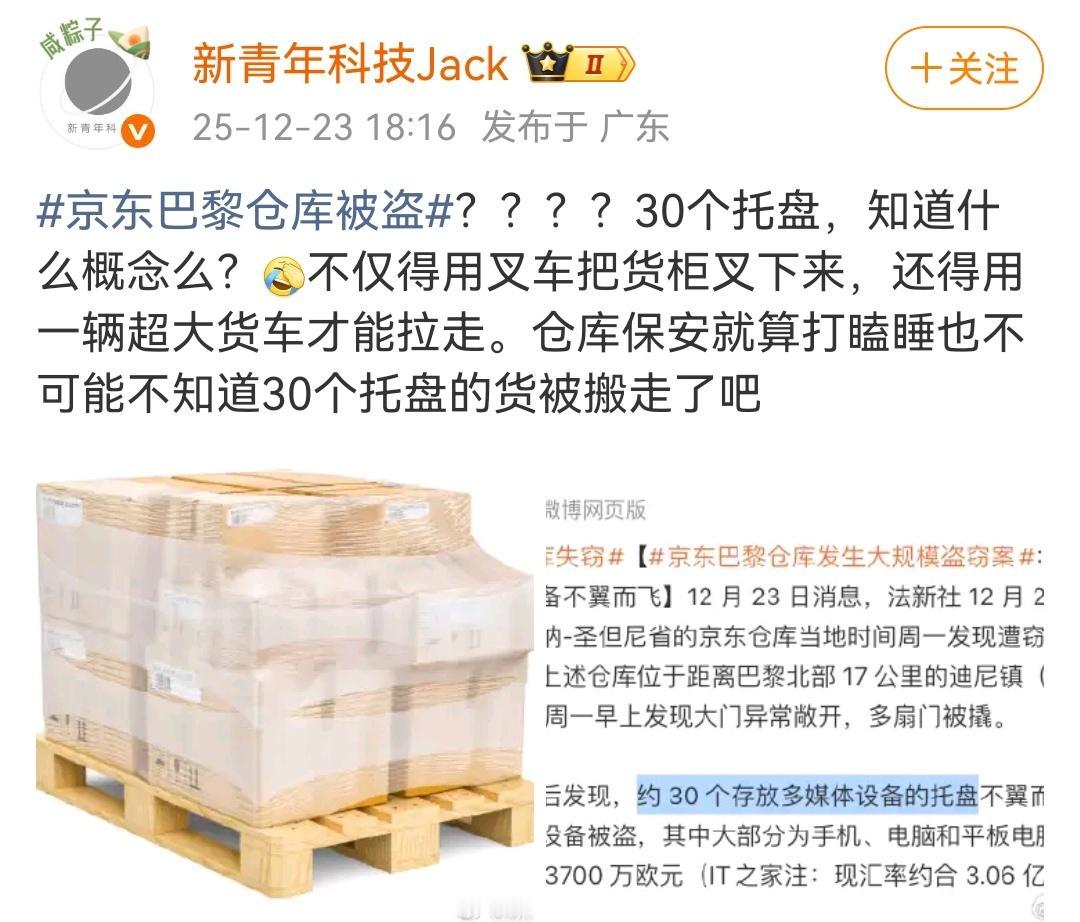 中企在欧洲一定要注意防盗。 (图一)中企制造的汽车,在英国接受了“抗破解测试”,结果表明中国造汽车必须强化防盗性能,否则就会成为当地汽车盗贼们的盘中大餐。 (图二)京东巴黎货仓被盗,30个大托盘的电子产品不翼而飞,价值几千万欧元,约3亿人民币。 中企在欧洲发展一定要注意防盗,否则挣得再快,能有欧洲盗贼们偷得快?