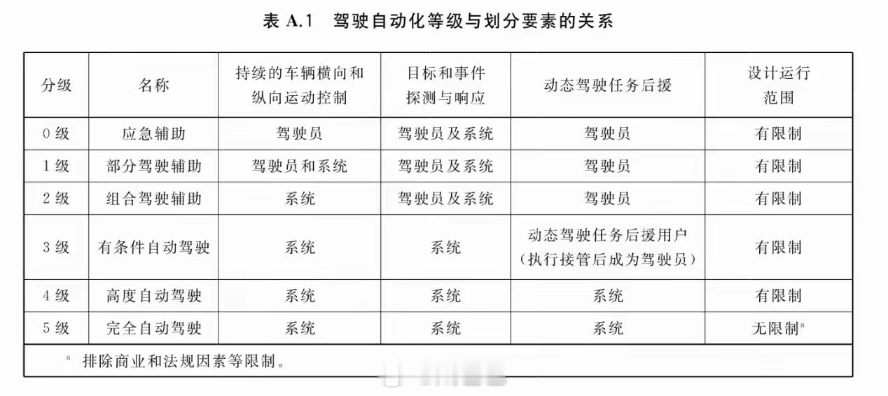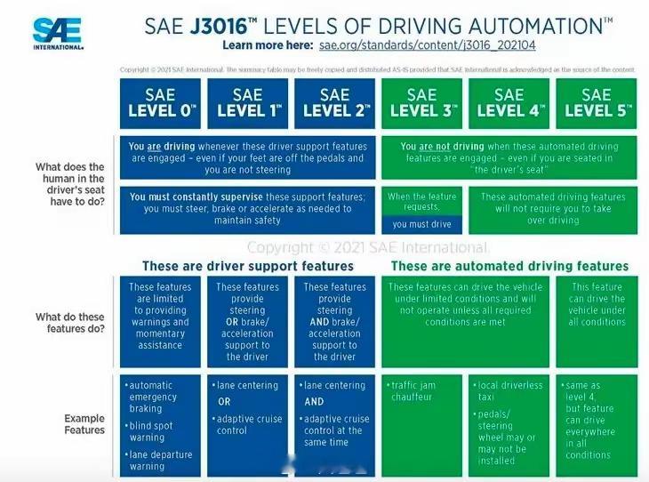 L3级自动驾驶专用正式号牌来了首批L3自动驾驶车型品牌曝光 关于自动驾驶的等级划分,我们经常可以看到2个版本的定义:第一个是 SAE(Society of Automotive Engineers 美国汽车工程师学会)的 J3016 版本第二个是我们国家出台的国标GB/T 40429-2021《汽车驾驶自动化分级》说说两者对L3定义:相同的地方:两大标准中 L3级别的定义都是车辆可以完成绝大部分驾驶操作,但同时都明确这一级别的自动驾驶是有条件限制的,因为不是所有的情况车辆都能自己搞定,人类驾驶员们都需要响应系统的接管要求,对车辆进行接管。所以千万不要被一些言论所误导,说什么可以睡觉,我认为这种言论极其不负责任,误导了消费者对于L3的认知,这也是当前很多事故发生的根源,因为这种言论下意识给了客户极其错误的心理暗示。不同的地方:国标针对L0-L2级,规定了“目标和事件的探测与响应”是驾驶员和系统共同来完成,而SAE则要求驾驶员必须完全承担驾驶汽车的目标,事件,决策的整体任务,所以看上去我们的国标对于车辆的系统要求更高一些。此外我想说得是 行业目前有一种比较趋于共识的认知,那就是端到端范式的落地,使得L2与L4的方法论开始趋于统一,通过统一的开发范式,低成本复制,全域泛化能力,我们能够以极低的部署成本和几乎无限制的部署区域扩张速度,落地L4系统。地平线苏箐曾说过“L3可能只是一个短暂的过度,你现在开的是 L2 的车,三年后买到的车已经是准 L4系统了,是高概率会发生的。”