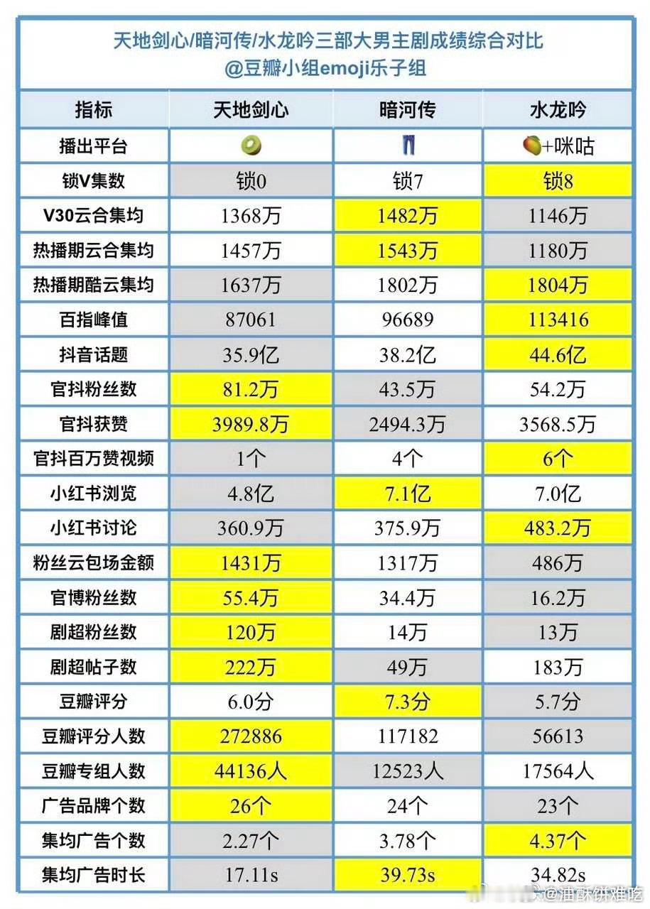 这么看暗河传和水龙吟其实都比天地剑心播的好,毕竟他们第一的项比较实在,是反映播放情况的