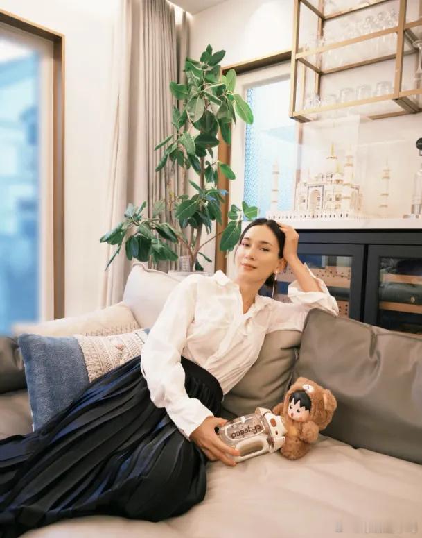 卢靖姗穿着白色衬衫真是妥妥的御姐范,这也太好看了吧!才生完二胎两个月的时间就瘦出了小V脸,扎着低丸子头,哪里看得出是40岁的两个孩子的妈妈呀!