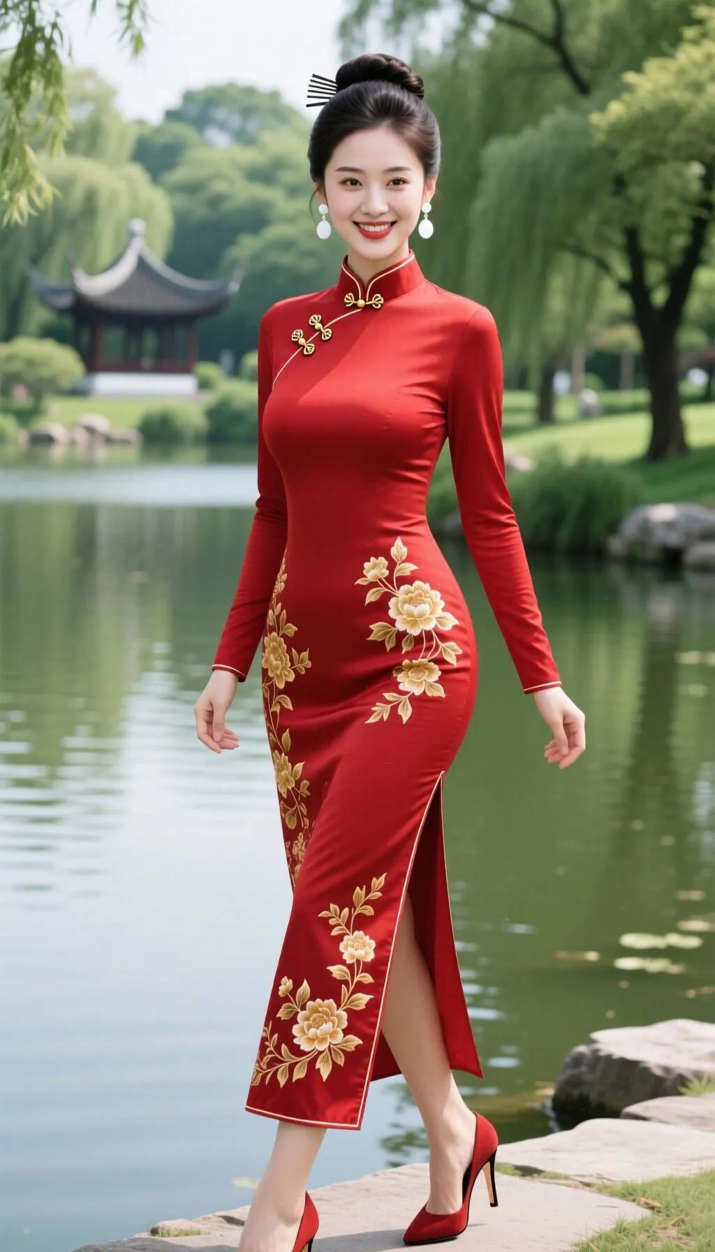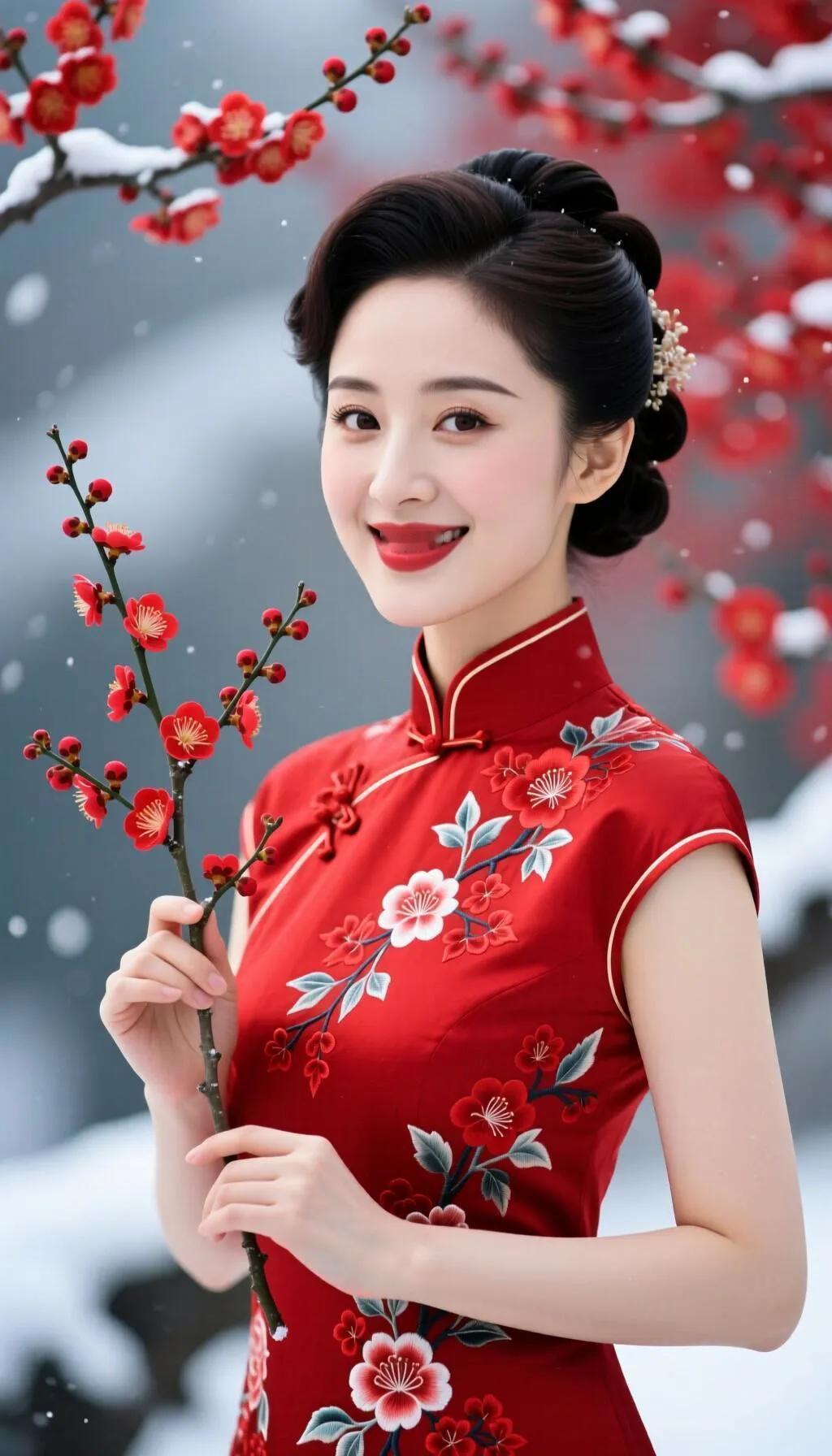 优雅的旗袍,绽放的花朵,古典与现代的完美结合。