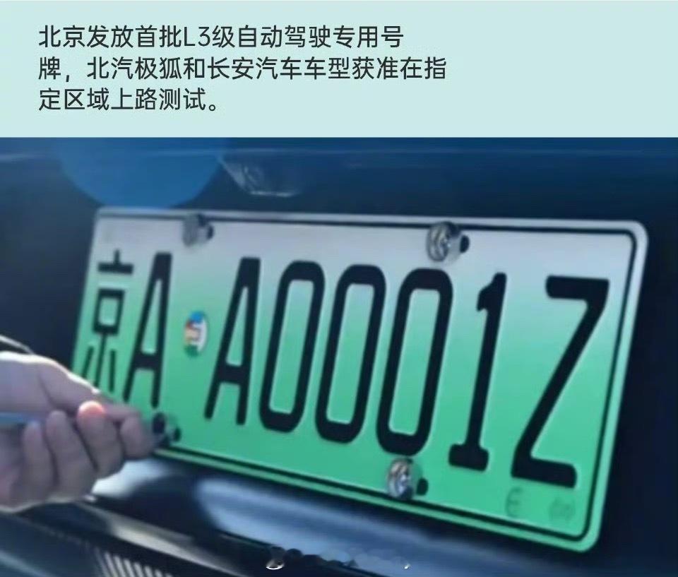 L3级自动驾驶专用正式号牌来了 总算是正规化了,新能源的绿色渐变号牌,尾部多一个英文字母“Z”也算是正规化!新能源大牛说