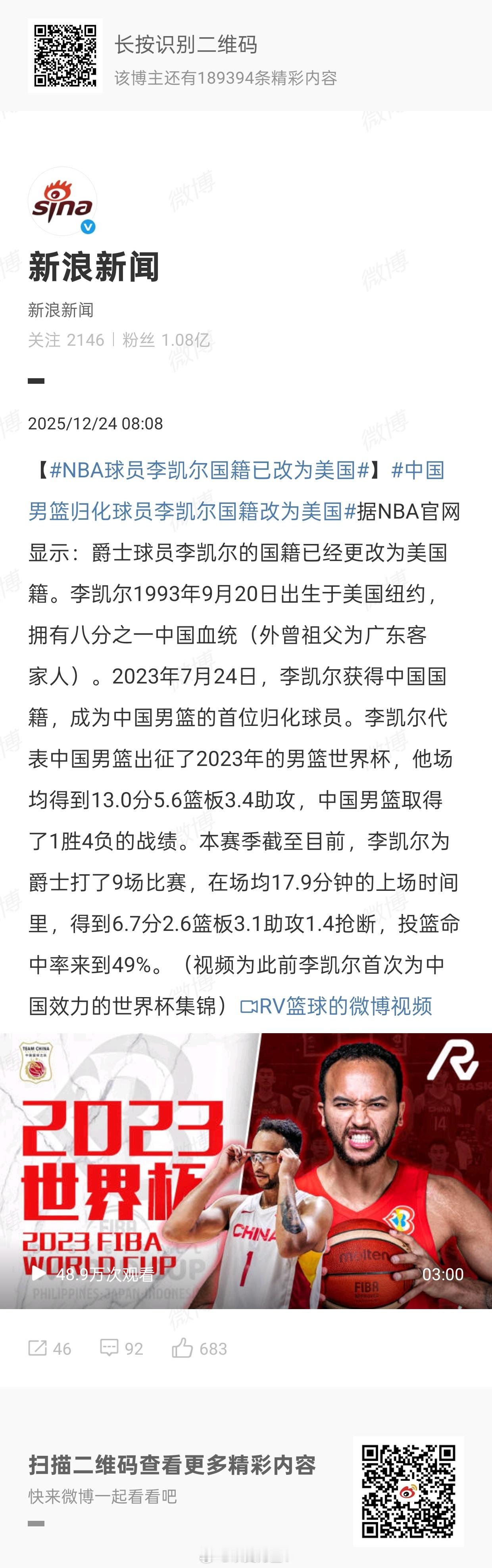 中国男篮归化球员李凯尔国籍改为美国所以说,很多新闻都证明了改国籍的归化球员基本上都是为了某些人的利益,根本没有太多对于一国的忠诚度。只有极个别的运动员归化之后就安心为我国效力,而且越是小众项目忠诚度反而越高;越是大众项目归化军忠诚度越低……足球上已经有多名归化球员证明了他们的忠诚度,现在篮球上也出现了。这样的新闻越多,体总未来还想归化球员的话,这路就会越难。(当然,如果是混合泳袁主任这种级别的人,还是该干嘛干嘛吧,调查是调查不了的,处理也是处理不了的)