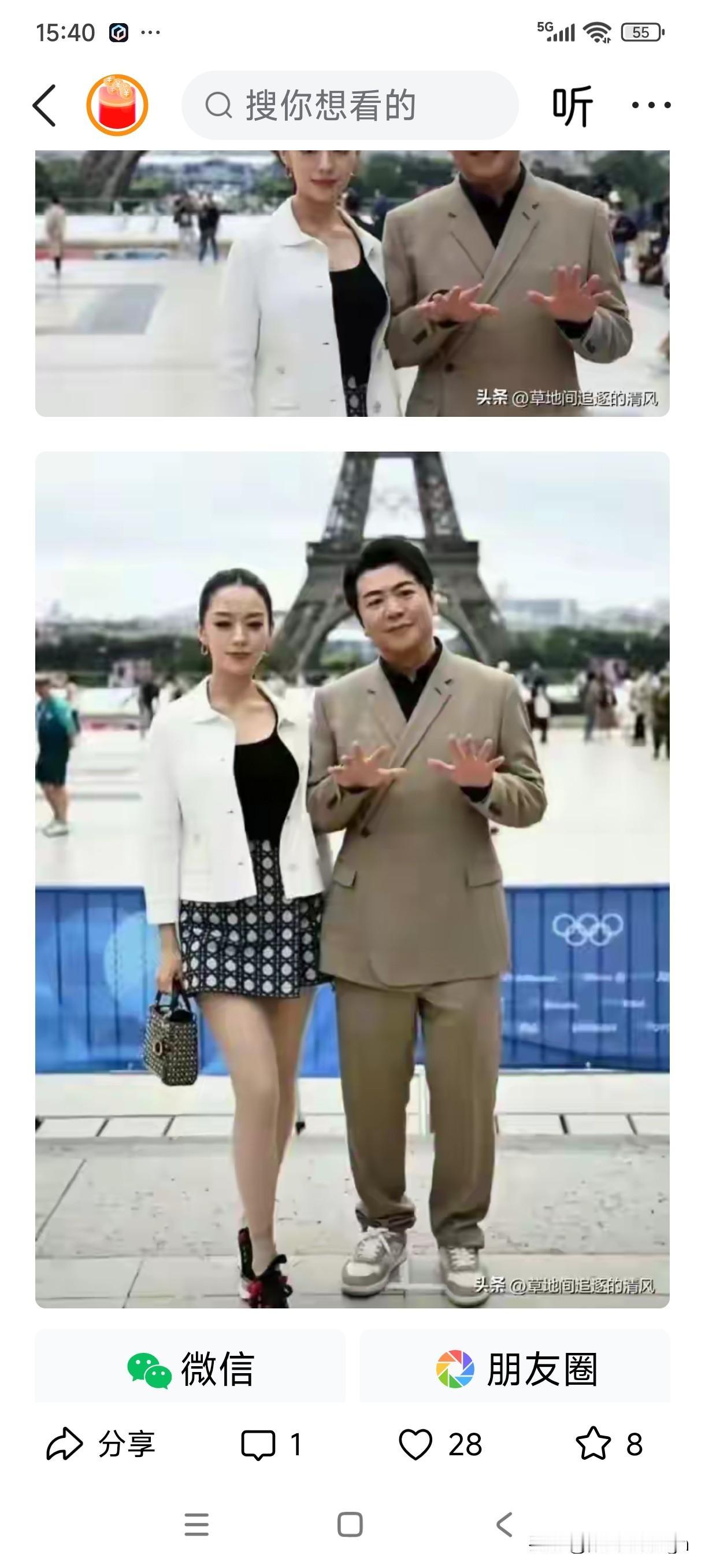 钢琴家朗朗和吉娜在巴黎铁塔前合影,郎朗突然把两只手伸到前面,还把十个手指都分开,看起来像是在摆一个很夸张的姿势。 其实他是在模仿弹钢琴的动作,好像在说:“我虽然是来旅游拍照的,但我的手可是专业的,随时都能弹钢琴!” 这种搞笑又有点炫耀的感觉,让人一看就知道他是钢琴家,而且还不失幽默感。