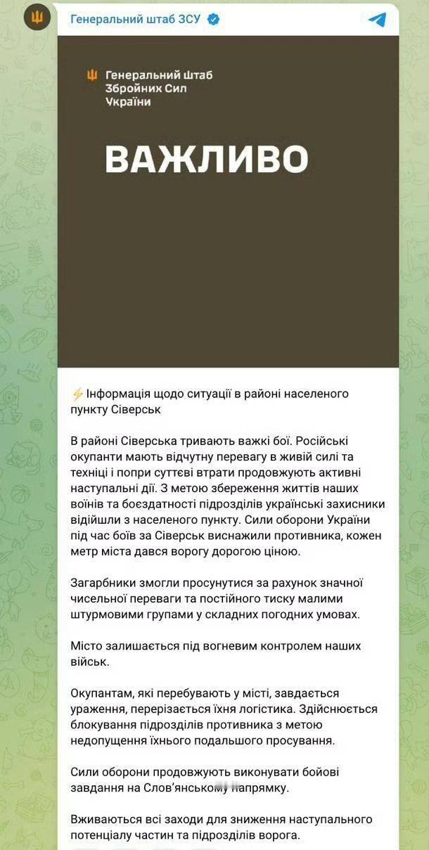 乌克兰总参谋部宣布,乌克兰军队撤出谢韦尔斯克市。这座城丢了之后, 俄罗斯进入斯拉维扬斯克市和克拉马托尔斯克市门户大开,此后, 俄罗斯对夺取其它城市的控制权速度会更快。俄乌杀红了眼海外新鲜事热点现场