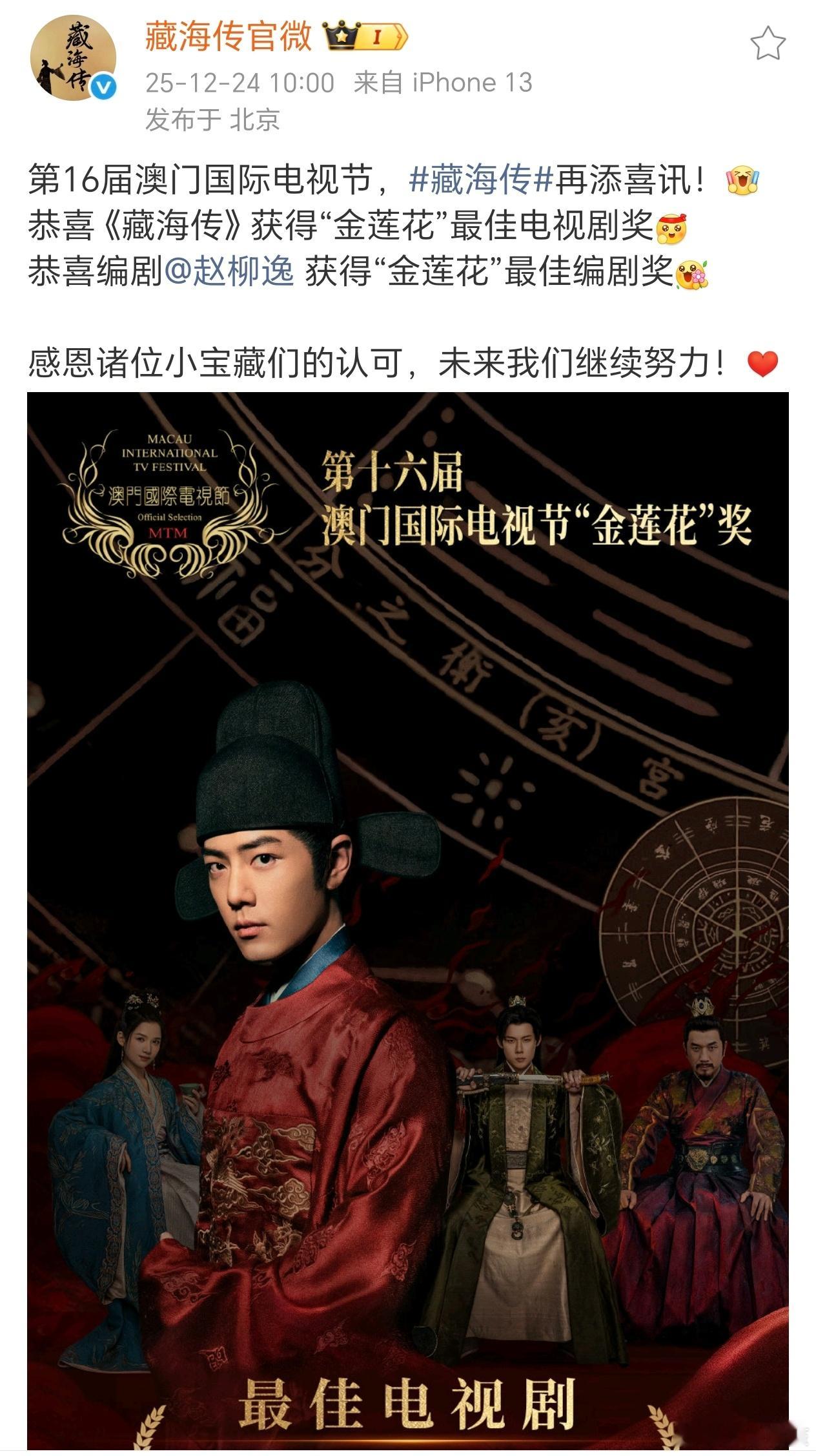 恭喜《藏海传》获奖,好剧就是会得到各种认可