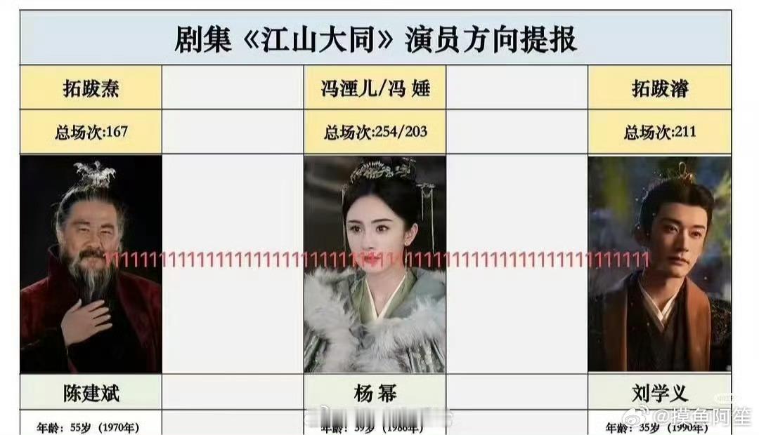 《江山大同》都爆了这么细的选角Excel了,大概率真的是杨幂,刘学义,陈建斌了。其实冲着杨幂我还是很想看的