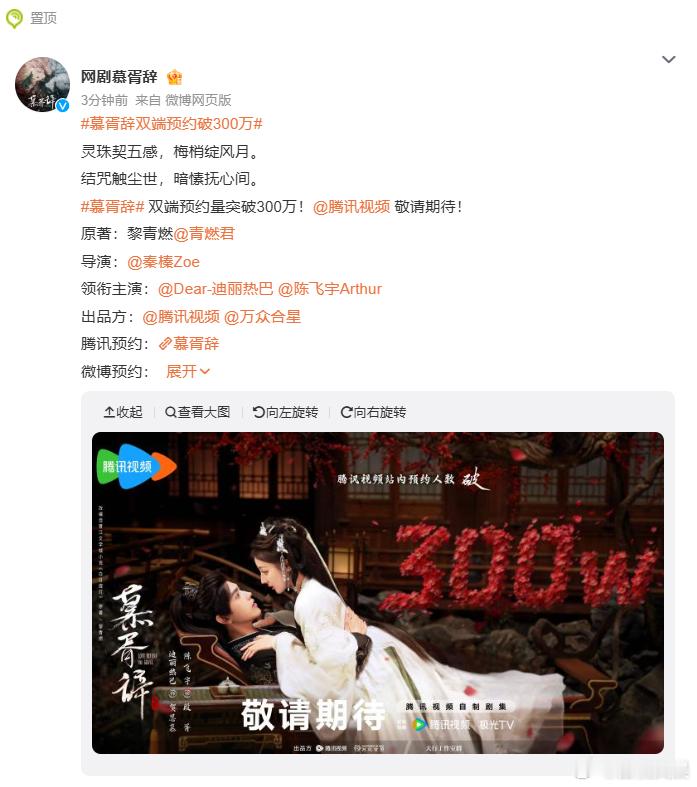 一组《慕胥辞》的全新海报对外公布,剧集同步传来预约量破 300 万的消息,迪丽热巴和陈飞宇的床咚戏份看点十足。慕胥辞预约破300万海报迪丽热巴床咚陈飞宇