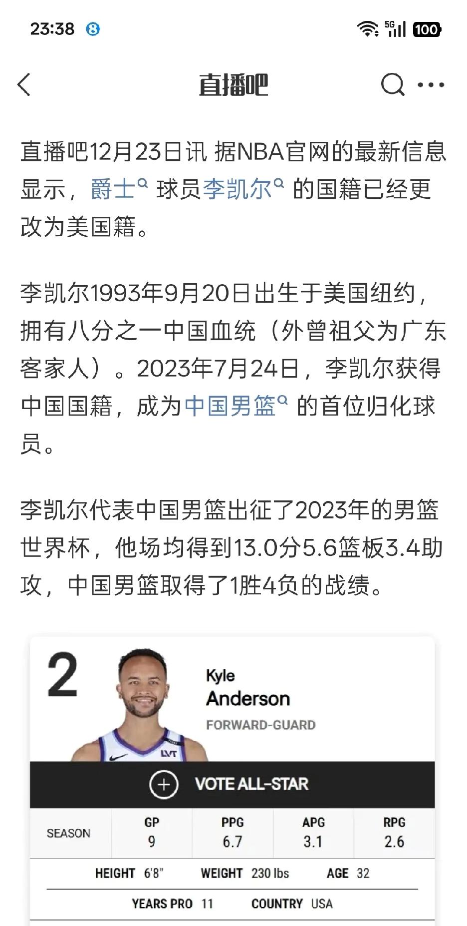 NBA官网:李凯尔的国籍已经更改为美国籍。 改就改吧!感觉李凯尔的作用更多是串联,运控肯定不丢。 但是国家队需要的是大包大揽的球员,比如麦迪,科比,杜兰特这种极致的得分欲望。甚至JR等。