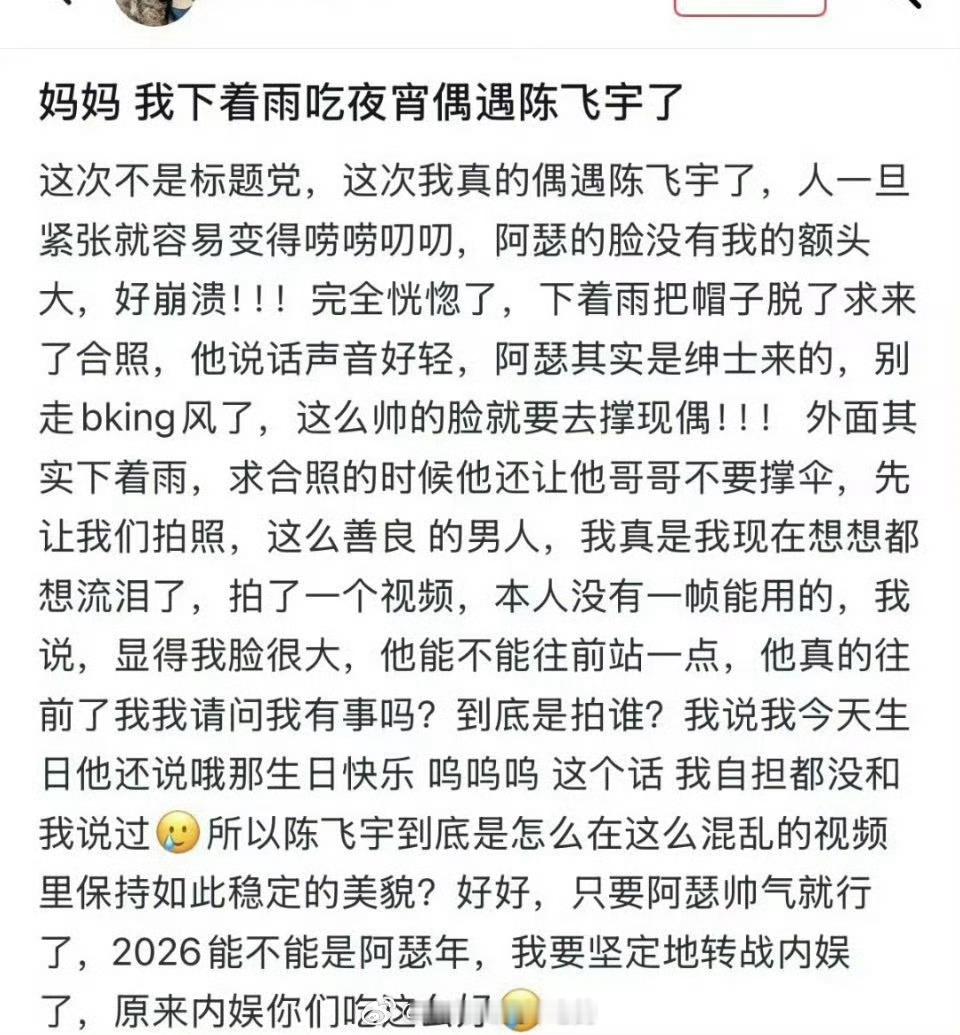 网友在偶遇陈飞宇后,感慨阿瑟的绅士善良和美貌,要为阿瑟转战内娱了2026可以是阿瑟年!
