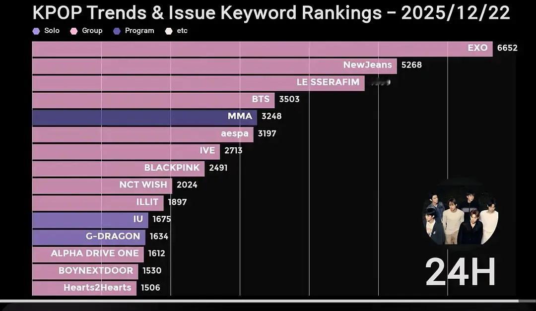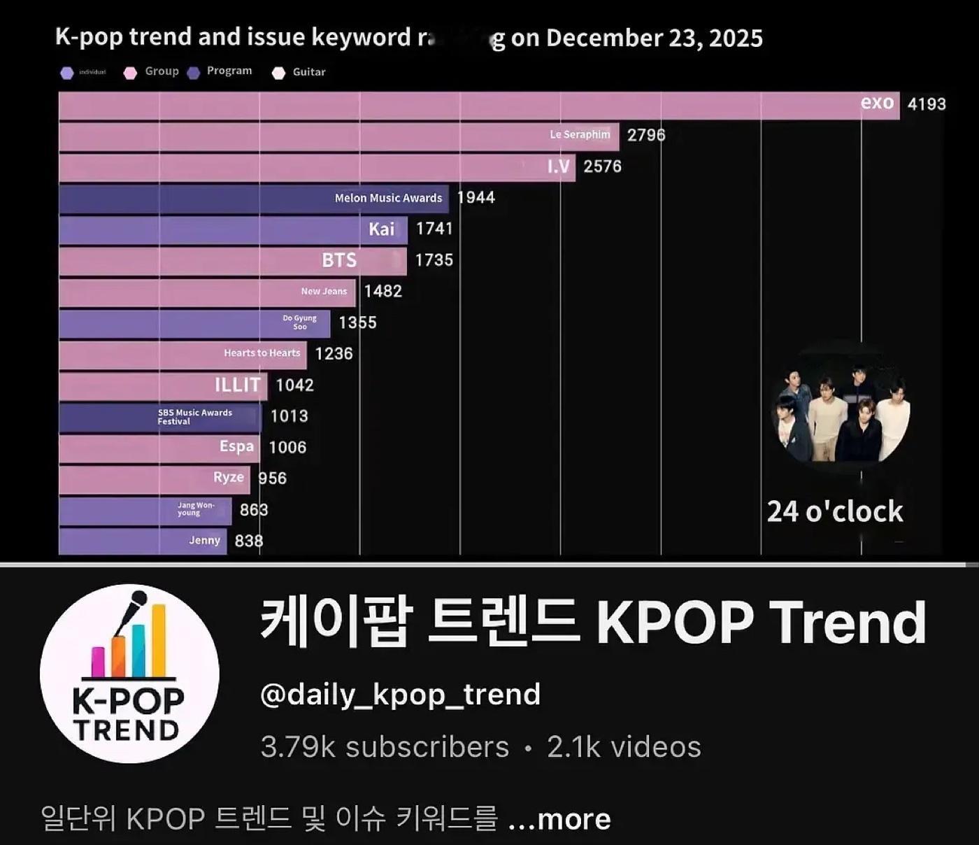 Kpop趋势24h排名12.21-12.23EXO断层领跑,有效年末舞台🎉