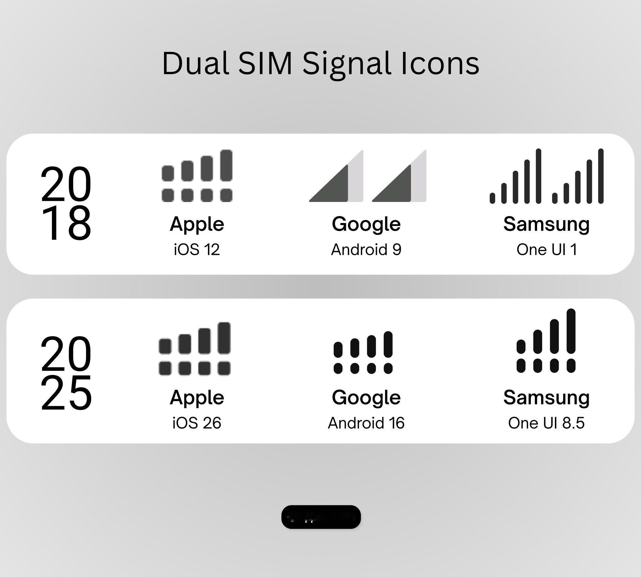 给你们看看 iPhone、谷歌和三星手机的双卡信号图标,质疑苹果、模仿苹果、成为苹果国产手机好像也差不多都长这样子了新机来了