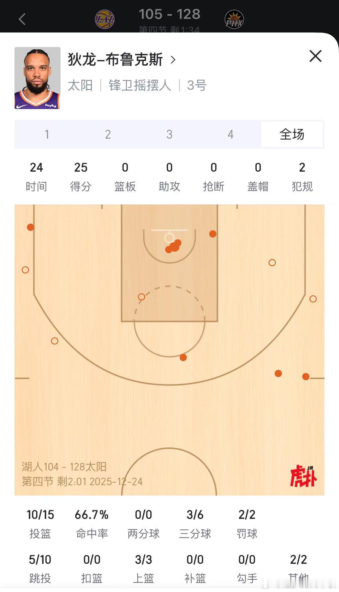 湖人落后24分进入第四节!第三节,太阳单节轰下45分,72.7%命中率湖人vs太