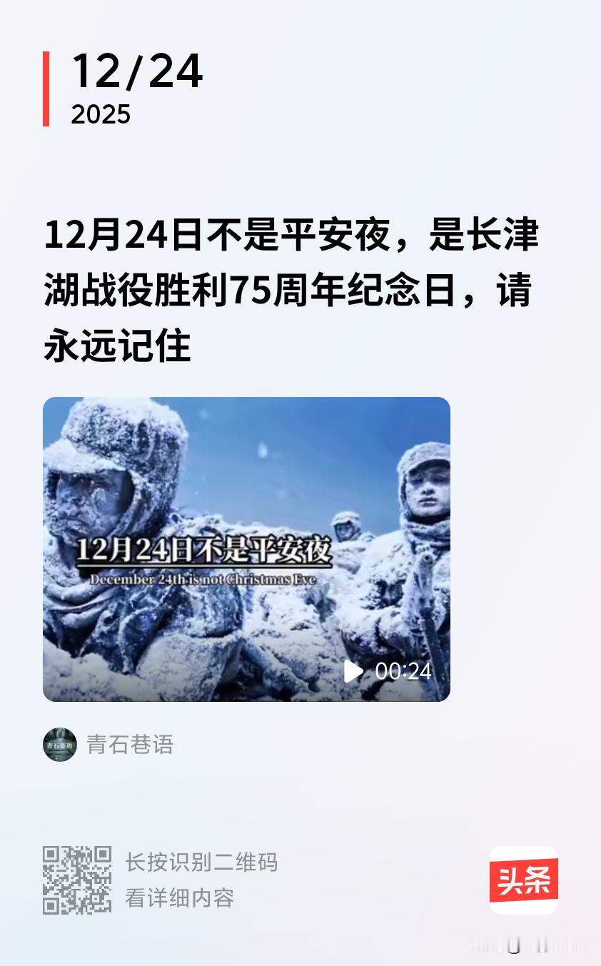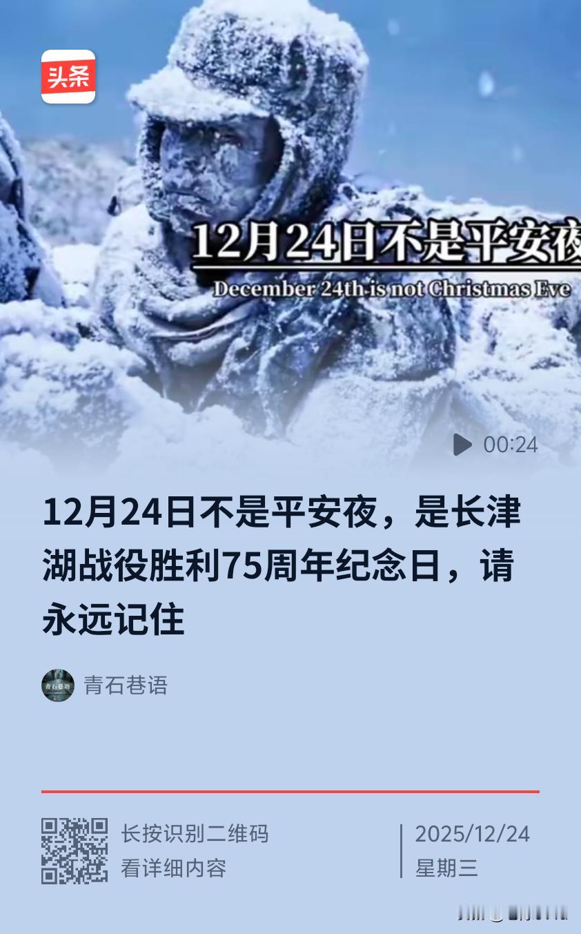 2025年12月24日是长津湖战役胜利75周年纪念日。长津湖战役发生于1950年11月27日至12月24日,它是抗美援朝战争第二次战役中的东线之战。这场战役的胜利改变了朝鲜战局,在世界战争史上书写了以顽强意志战胜绝对优势装备之敌的光辉篇章。