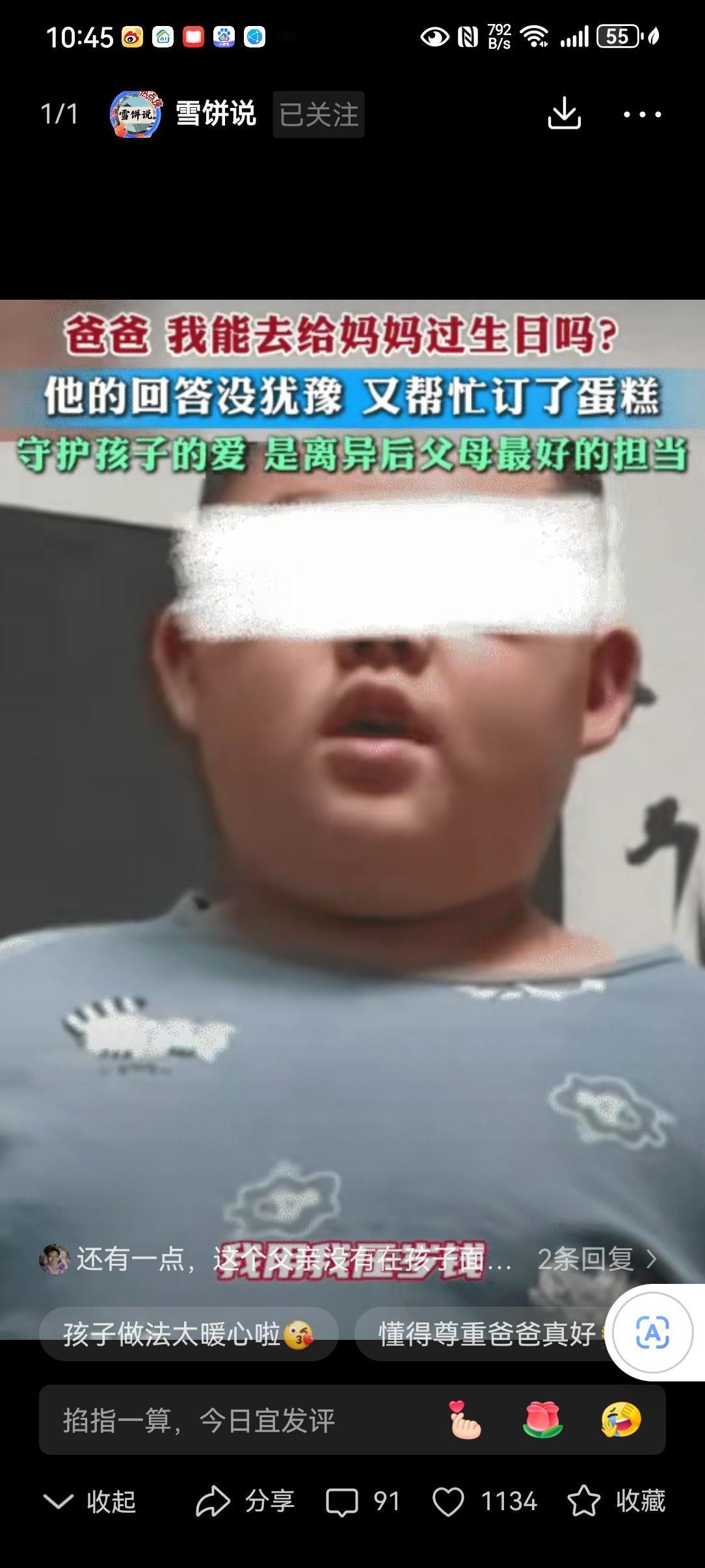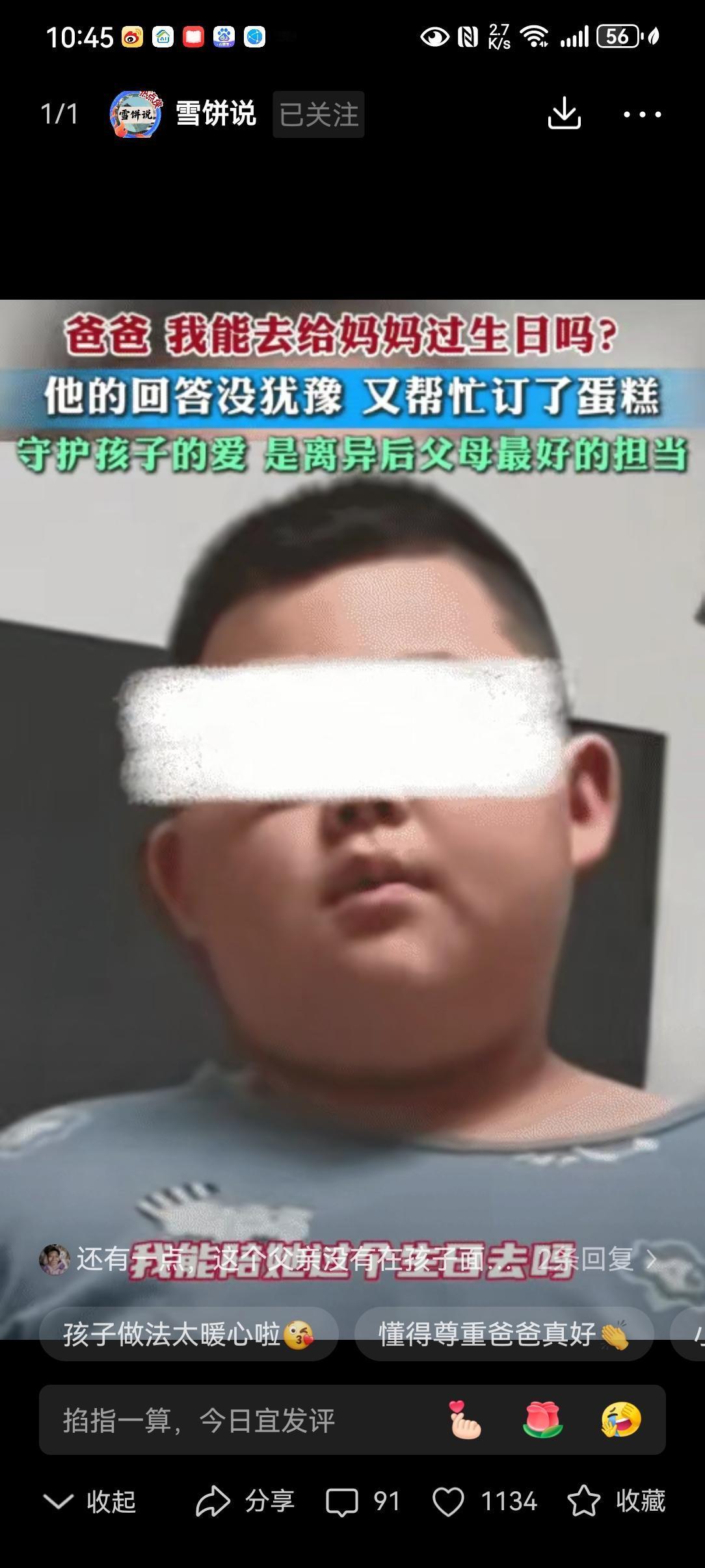 母子连心!山东,一对夫妻离异后,男孩跟着父亲一起生活,他突然找到父亲,询问能不能去找妈妈过生日,爸爸同意后,男孩又提了一个新的要求,就是想把自己的压岁钱拿出来给父亲,让他帮忙订一个生日蛋糕。网友:这也太懂事了 父母分开后,男孩跟着父亲过活。妈妈生日这天,他攥着衣角走到父亲跟前,小声却坚定:“爸,我想去给妈妈过生日,行吗?” 父亲愣了愣,点头应了。男孩却没动,又补了句:“我想用我的压岁钱,你帮我订个蛋糕,我带去。” 这话听得父亲心头一热。他依言订了蛋糕,看着儿子背着书包,一手拎蛋糕、一手揣着给妈妈的小礼物,一步三回头地出了门。 父亲把这事随手发上网,没想到引来一片感慨。有人说,这孩子懂事得让人心疼;也有人叹,原来离婚家庭的孩子,也能揣着赤诚的爱。 孩子记着妈妈的生日,本是寻常,难得的是他先问父亲的意见——这不是规矩,是他眼里的尊重。他懂父亲的包容,也守着自己的分寸。 更难得的是那句“用我的压岁钱”。对孩子来说,压岁钱是藏在枕头下的宝贝,是能买零食玩具的底气。他偏要拿出来,给妈妈换一个生日蛋糕。 这哪里是蛋糕?是他没被家庭变故冲淡的爱,是小小年纪就懂的“心意要靠自己兑现”。 太多时候,我们总觉得离婚会给孩子刻下伤痕,却忘了孩子的心里,本就装着最纯粹的牵挂。父亲的成全,孩子的坦诚,凑成了最暖的模样。 不必说什么大道理,一个孩子的选择,早已道破:爱从不是非此即彼,尊重与体谅,才是一家人最该留的底色。