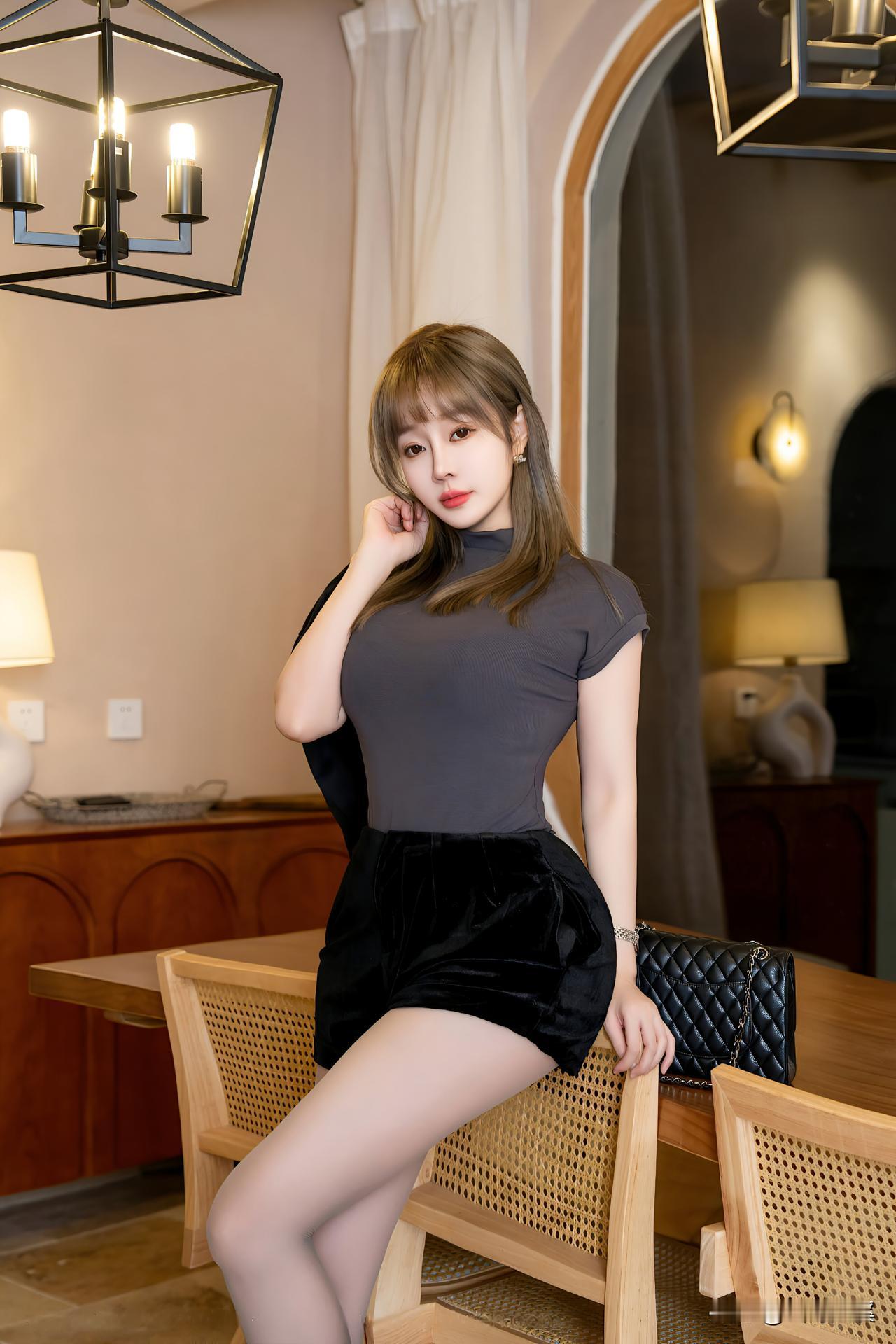 落地窗旁的皮裙女神,把“曲线美”玩出高级性感范!