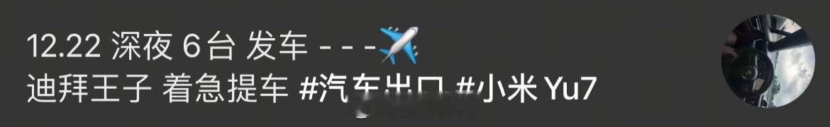这倒爷也是挺有实力,一下子六台小米YU7发往迪拜
