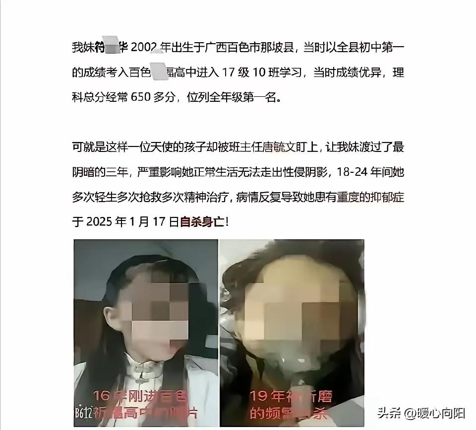 大快人心!广西百色性侵学生教师唐毓文一审被判刑十八年。 教师这个职业本是一种神圣的职业,教书育人,为国家培养人才,是人民群众敬重的职业。他却干出这种道德败坏的事。 教育系统也要彻底反思,把孩子的安全、尊严和心理健康放在最前面。加强对教师的道德管理,营造一个良好的校园环境,让孩子们健康地成长。