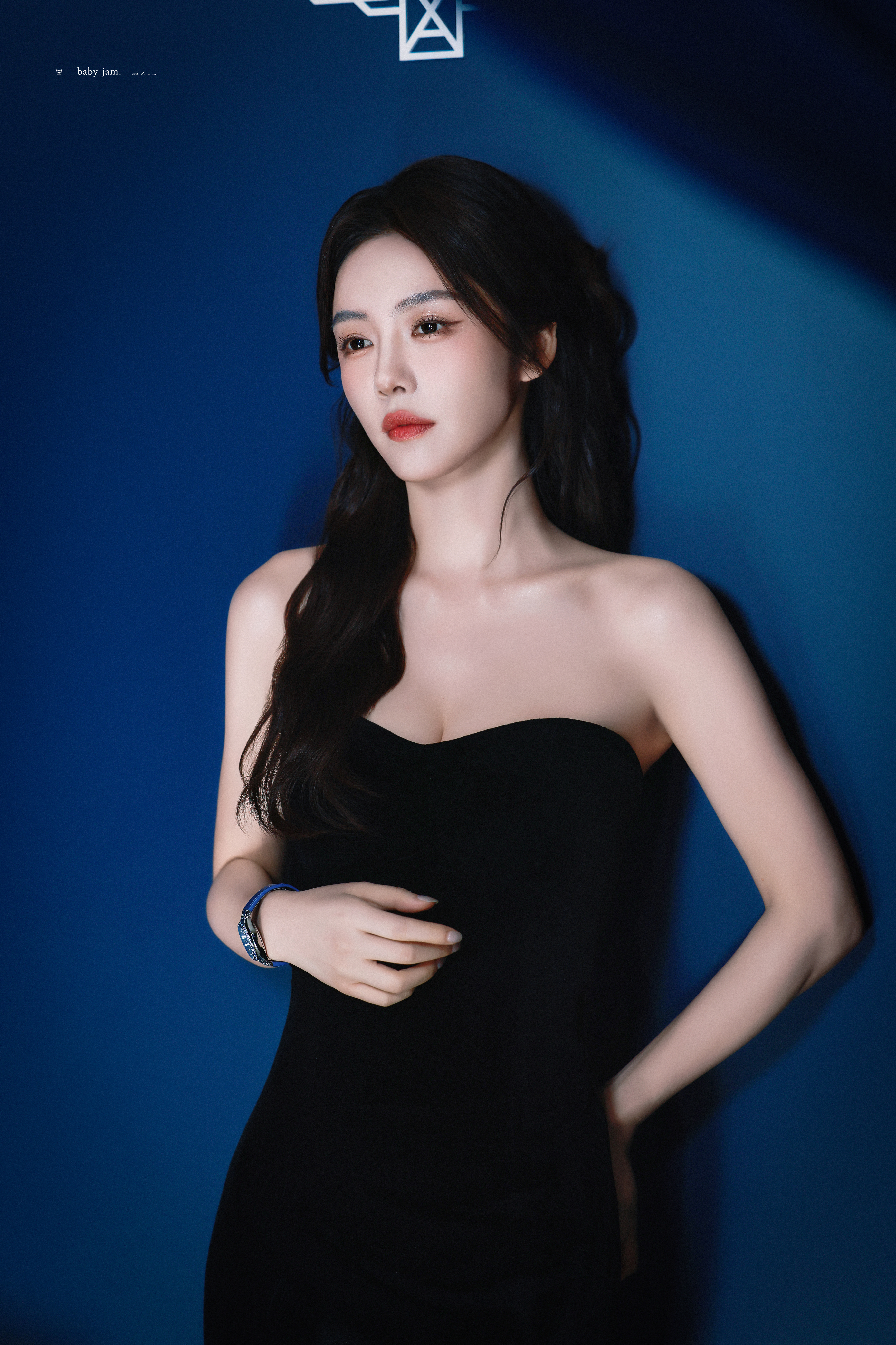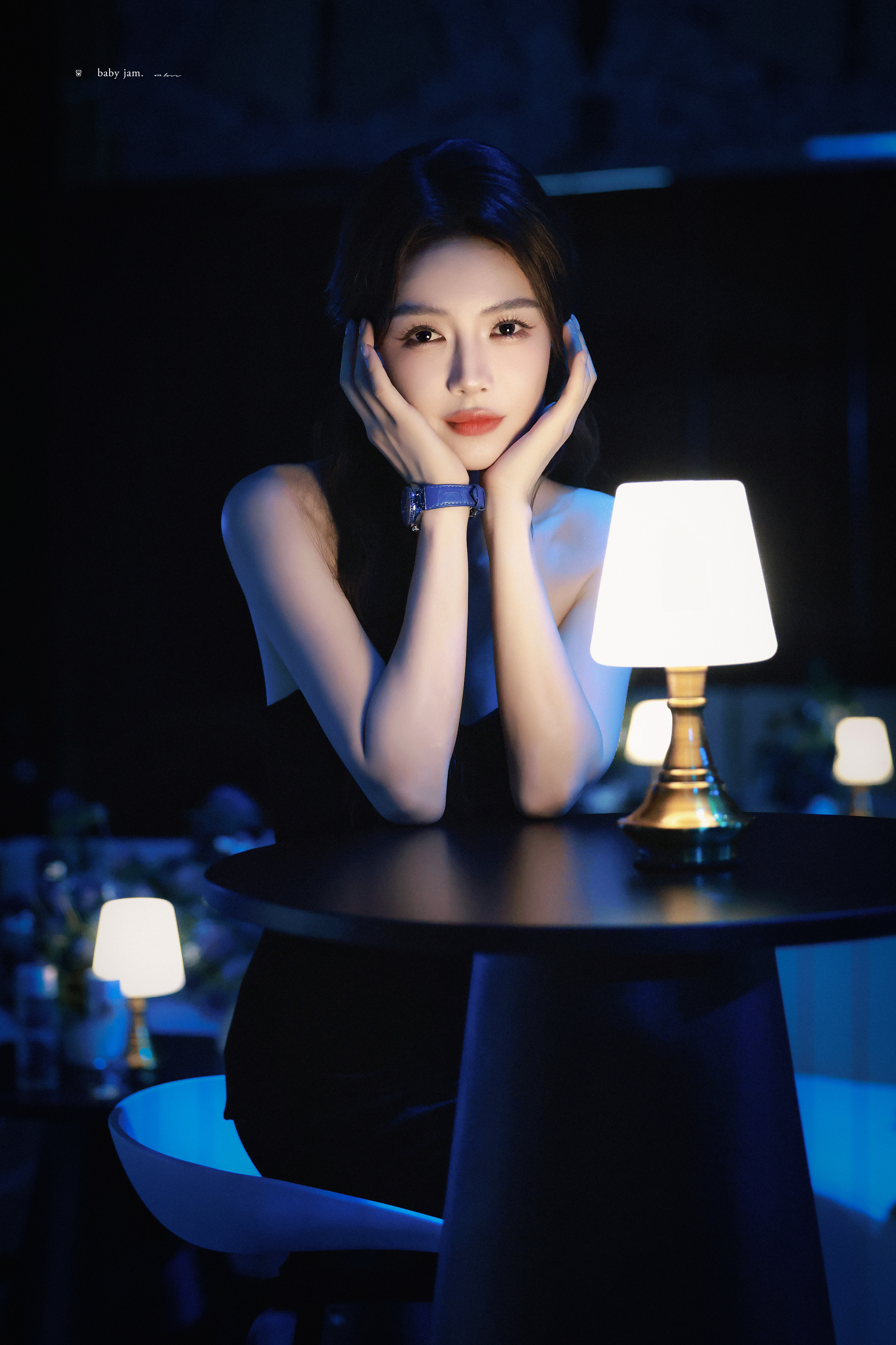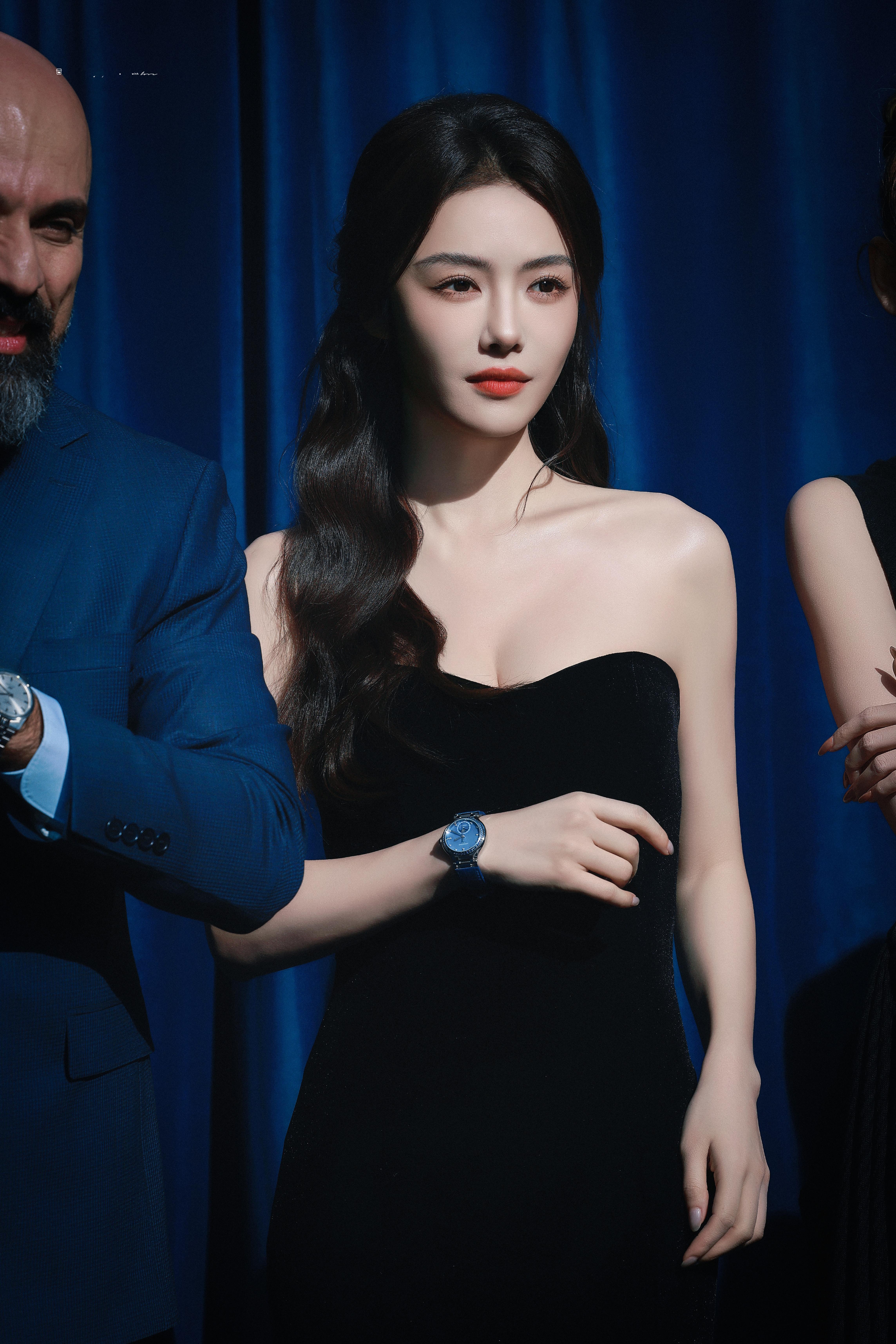 蔡文静 黑丝绒衬着的精致曲线,未语先勾魂,这柔美的弧度比夜色更动人。