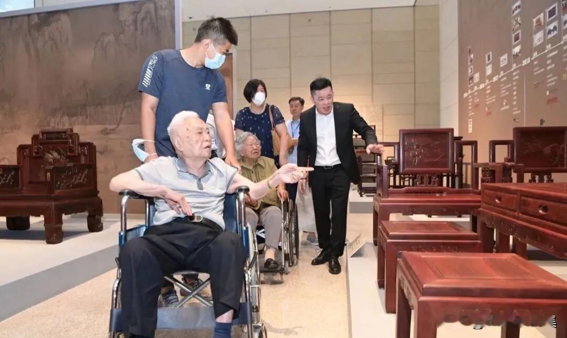2023年6月27日上午,王汉斌、彭珮云夫妇莅临中国工艺美术馆、中国非物质文化遗产馆,一同参观了由中国艺术研究院指导,中国工艺美术馆、中国非物质文化遗产馆联袂主办的“心传—陈玉树新时代古典家具艺术展”。陈玉树生于福建莆田,是中国古典家具行业先锋人物,国际知名华侨艺术家。他自幼对中国古典家具情有独钟,童年时光大多在祖辈的家具作坊中度过。历经徒、工、匠、师、家的磨砺,他袭承古法之精髓,将木作榫卯结构和雕刻工艺发挥得淋漓尽致。