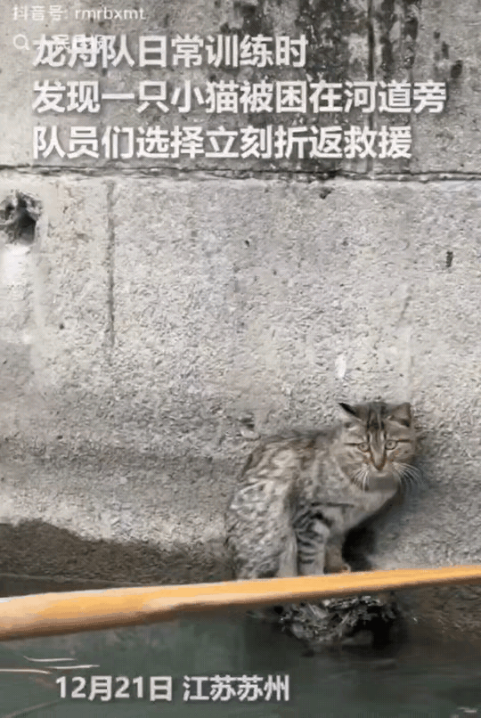 竟然上了人民日报了!江苏苏州,一只小猫被困在小块石头上,稍动就会落水。恰好一支日常训练的龙舟队瞧见了它。 龙舟队本已划过,看到小猫后又折了回来。起初一人想徒手抓,小猫不配合,大家没经验也不敢硬来。 后来改用船桨,两人配合托举不稳,第三支船桨加入,才成功把小猫送上岸。 这小猫咋到石头上的让人好奇,虽说猫会游泳,但被困总归危险。 好在龙舟队及时伸出援手,让小猫成了被“托举”的幸运儿。 如今生活好了,大家有能力关爱小动物,这就是人与自然和谐相处的体现。 你身边有过这样救助小动物的暖心事吗?快来评论区分享分享。