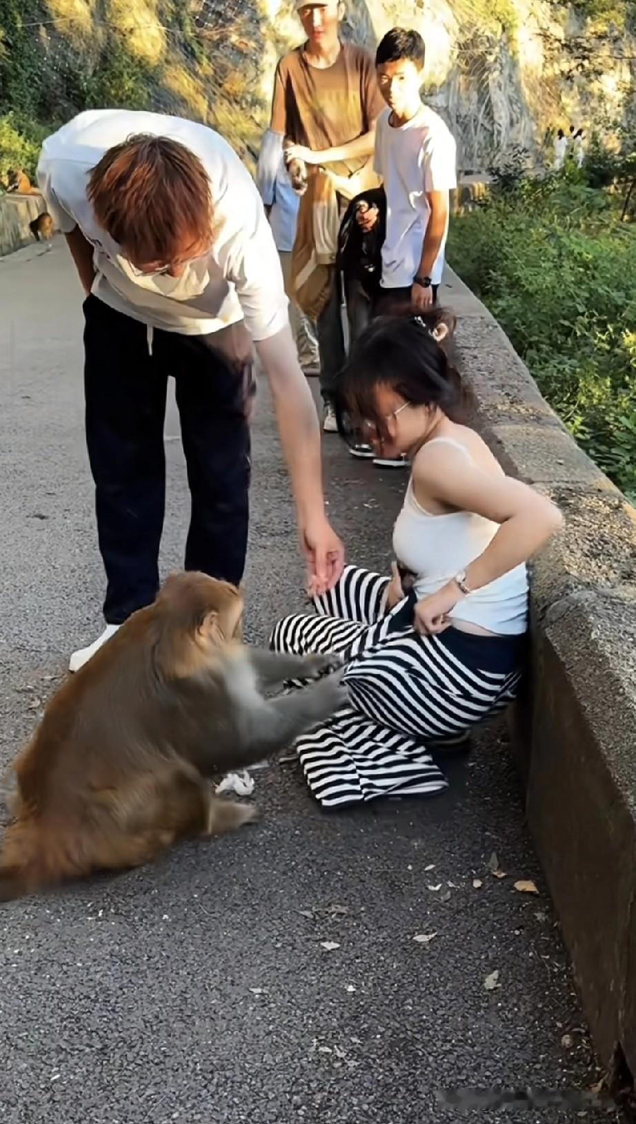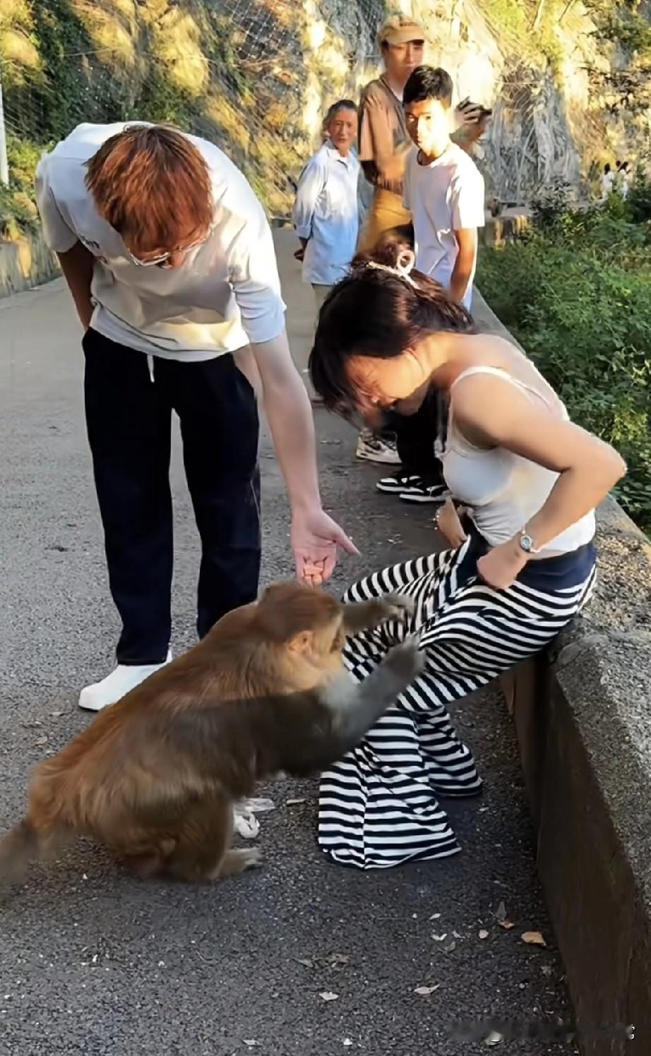 景区猴子当众扒女生裤子,围观者只拍不帮引热议 景区偶遇离谱一幕!一只猴子蹲在地上,伸手就去扒一位女游客的条纹裤子,女生吓得慌忙按住裤腰,身旁的男生伸手想阻拦,却也只是轻轻拨弄猴子,周围还有不少游客举着手机拍摄,没一个人上前帮忙。 猴子抢食、挠人的事见多了,可当众扒游客裤子还是第一次见,女生当时的窘迫隔着屏幕都能感受到。有网友说景区的猴子本就野,游客自己得做好防护;也有人怒批围观者冷漠,只顾着拍视频看热闹,完全不顾当事人的尴尬和安全。 景区的野生猕猴确实需要保持距离,但遇到这种情况,旁观者到底该出手制止,还是只当“看客”就好?