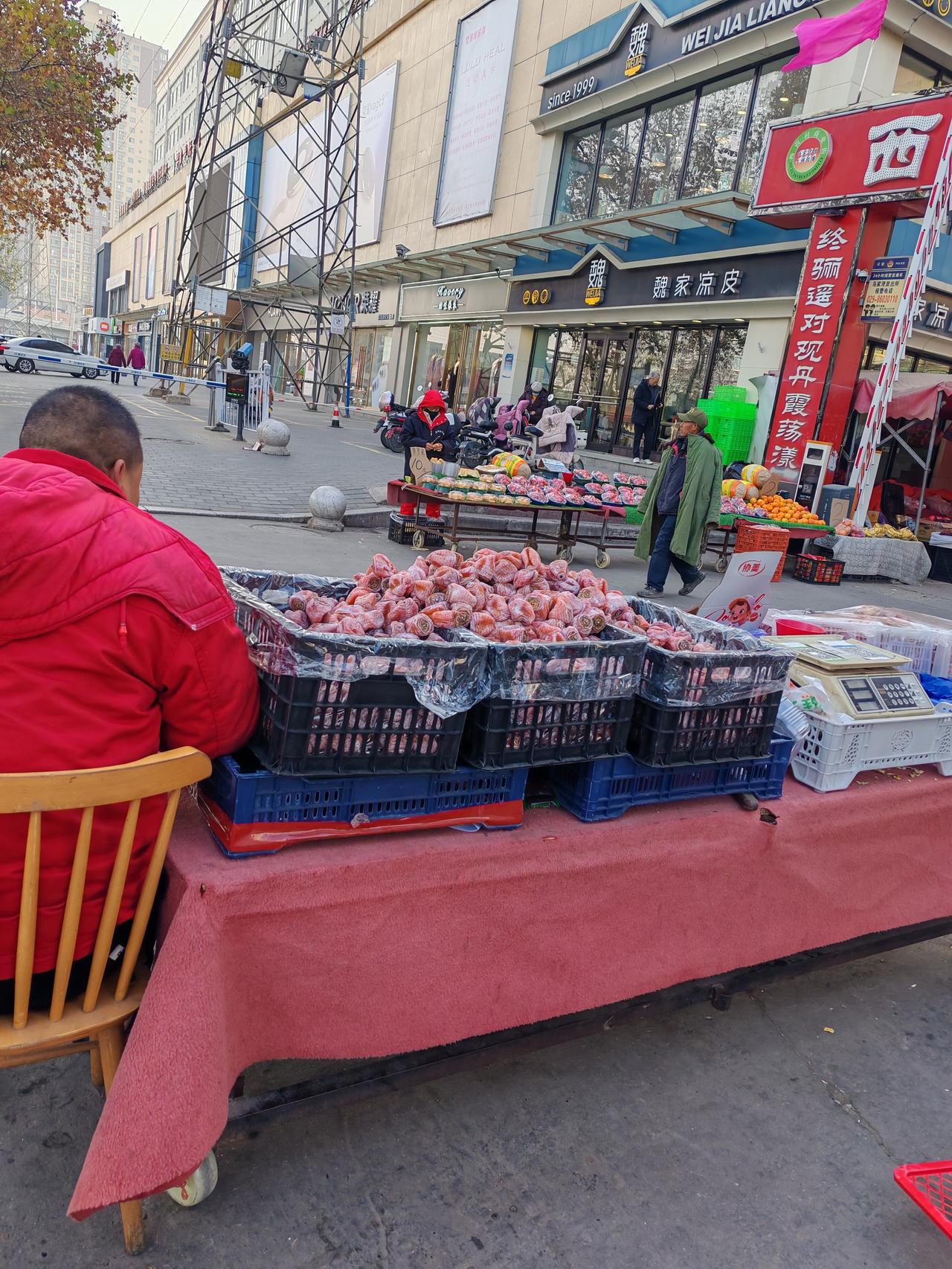 再来分享一波富平柿饼 12月24日,陕西西安。上星期我路过集市拍摄了一些柿饼,评论区有网友说都不是富平柿饼。 今天路过高陵区所辖一个叫西营商业街的市场,同样看到一些卖柿饼的小摊,我拍摄了两家,头巾大嫂的柿饼摊前放了一个大大的牌子,上书“自产自销,正宗富平柿饼,软糯香甜”,入口处一个红衣大哥(图2)没挂牌子,但有一个小喇叭在喊叫富平柿饼。 这个区域离富平近,是真货的可能性大,红衣哥的柿饼卖十元1斤,头巾大嫂家的柿饼有两种价位10元和15元,见我张望,大嫂招呼我,给我说15这种是好品质的,如果我要的多,给我优惠,算1斤12元。 上次有网友给我分享,说低于15元都是假货,我今天看不一定,毕竟这边是产地,今年的鲜柿子丰产价也便宜,我不会辨认,你们看看图片中这种白霜柿饼是富平柿饼吗?白霜柿饼