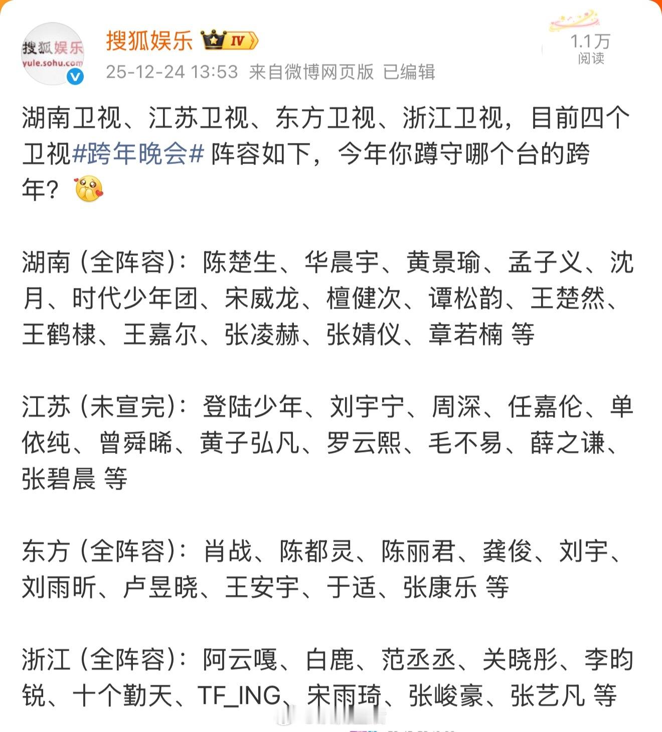 今年四大卫视的跨年演唱会,大家看哪家呀?