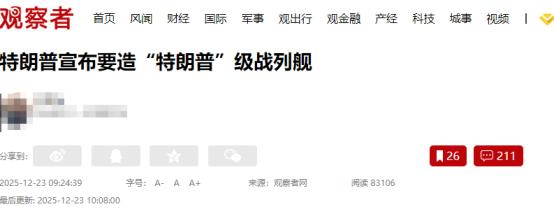 排水量35000吨!特朗普高调宣布:将建造20-25艘特朗普级战列舰!   海湖庄园的聚光灯下,特朗普指着身后巨幅战舰海报唾沫横飞:“3 万 5 千吨!25 艘!这将是世界上最大、最致命、最美观的战舰!”   当地时间 12 月 22 日,这位美国前总统拉着国防部长和海军部长站台,高调宣布启动 “黄金舰队” 计划,要造以自己名字命名的 “特朗普级” 战列舰,这可是美国自二战后头一回重启战列舰建造,听着着实唬人。   但懂点海军史的人一琢磨就觉得不对劲:战列舰这玩意儿早就是博物馆里的老古董了。想当年二战时,日本 “大和” 级战列舰刚下水就成了航母的活靶子,美国的 “衣阿华” 级也只能靠岸轰凑数。战后各国为啥全停建?   因为海战早不是 “舰炮对轰” 的老套路了 —— 反舰导弹能打一百多公里,战列舰的大口径炮撑死射程四十公里,还没靠近就被揍沉了。   更别说它目标大、吃水深,港口都不好进,维护一艘的钱能养好几艘驱逐舰。2006 年美国最后两艘战列舰退役时,海军部长就说了:这玩意儿跟不上时代了。   再看特朗普画的饼有多离谱。单舰 3 到 4 万吨,比现在的 “阿利・伯克” 级驱逐舰重三倍多,号称要装高超音速武器、轨道炮、激光武器,还要搞人工智能控制。   可五角大楼连设计图都没画好,特朗普就敢说 “两年半建成”。前海军少将蒙哥马利戳破了窗户纸:这船根本不是为了打仗造的,核心是要让总统觉得 “够酷”,外观得亮眼 —— 毕竟特朗普早就嫌现役军舰 “锈迹斑斑不好看”,还亲自插手设计审美。   更难受的是现实难题堆成了山。首先是钱,哈德逊研究所专家算了笔账,单艘 “特朗普级” 造价至少 100 亿美元,25 艘就是 2500 亿,可现在海军预算里压根没这笔钱。   上个月刚因为超支取消了四艘 “星座” 级护卫舰,这会儿又要搞更贵的新项目,简直是异想天开。然后是没人造船,美国造船业现在就剩不到 15 万工人,成熟技工平均年龄 55 岁,再过几年全退休了,年轻人还不爱干这行,每年流失 20%。   有人当场问特朗普咋解决劳力问题,他居然说 “靠机器人”,且不说造军舰的精密活儿机器人能不能干,美国至今没试过用机器人造大型战舰,这话说得比相声还悬。   这计划跟美国海军的发展方向根本背道而驰。这些年海军一直喊着要搞无人舰、轻量化装备,结果特朗普非要往回走,捡上世纪的旧概念。   更别说 “黄金舰队” 的其他部分也不靠谱,护卫舰要用海岸警卫队的巡逻舰改,连专家都骂 “毫无战术价值”。   2025 财年海军自己都承认,新造 10 艘船要退役 19 艘,舰队规模都在缩水,还硬要吹 “建 25 艘战列舰” 的牛皮,这不就是打肿脸充胖子吗?   说到底,这事儿从头到尾就是场政治秀。中期选举要到了,特朗普抛出这计划,一边能喊 “恢复美国海上霸权” 的口号拉选票,一边能给低迷的造船业画个 “创造数千岗位” 的饼,还能把自己的名字刻在军舰上。   这种把联邦项目当个人品牌的操作,也就他干得出来。可老百姓不傻,食品住房成本涨得飞起,谁会在乎一艘只存在于海报上的战舰?CNN 都批了:这 “命名狂欢” 根本是不顾民众疾苦。   仔细想想,这事儿跟之前 “尼米兹” 号在南海摔飞机又灰溜溜回国的戏码,本质上是一回事,都是美国霸权衰落的写照。   表面上耀武扬威喊着 “最强”,实际上连造舰的工人和钱都凑不齐,只能靠嘴炮撑场面。按照专家的说法,就算现在开始建船厂,十年都未必能造出一艘;等 2030 年代首舰真要开工,说不定特朗普的政治生涯都凉透了。   所以这 “特朗普级” 战列舰,大概率跟他之前的不少承诺一样,雷声大雨点小。   最后可能也就剩下几张海报挂在海湖庄园,成了又一个 “皇帝的新衣” 式的笑话,毕竟历史早就证明了,靠复古武器撑不起现代霸权,靠政治噱头更不行。