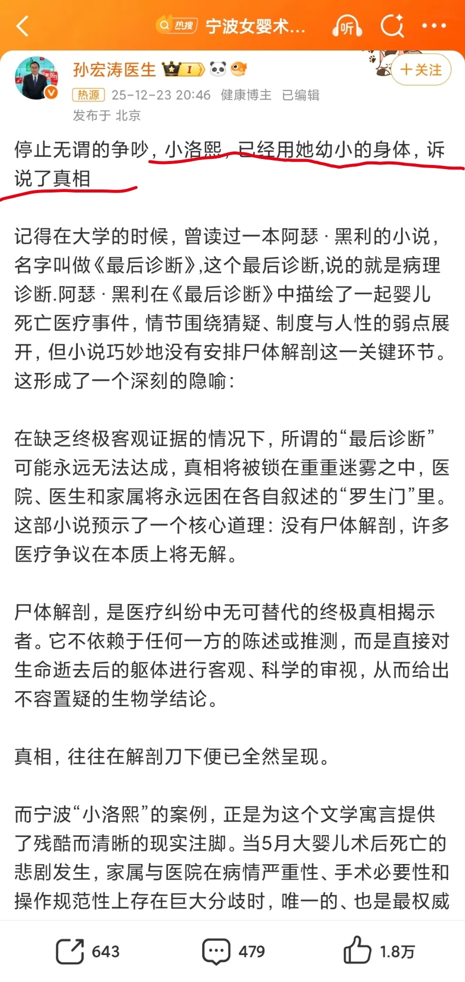 这句话一语中的,是啊,小洛熙已经用她幼小的身体诉说了真相。她的身体的报告,是一切问题的答案。#小洛熙##小洛熙爸爸#