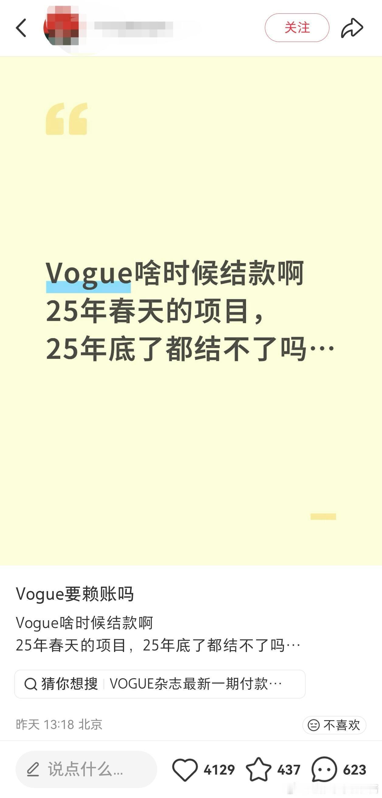 过年了各行各业的都开始讨薪了网友发帖 vogue25年春天的项目 25年低都结不了款不是吧😥要不然冲你请点儿流量艺人算了